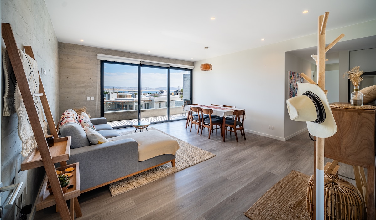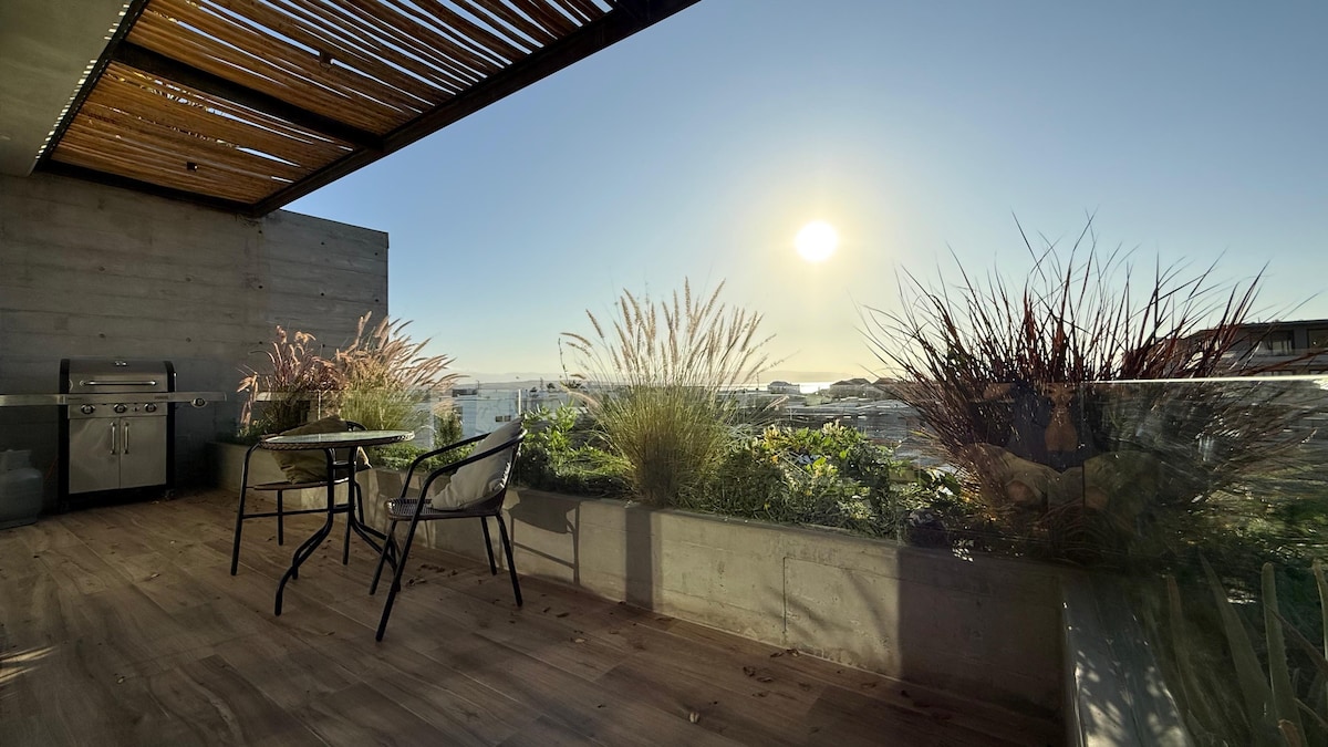 Located in the beautiful and modern Condominio Navigare Paracas, this penthouse with a private (unheated) pool, a large terrace with BBQ, and stunning ocean views is the perfect romantic getaway. Built in late 2021, this modern condo offers great amenities, including a fully stocked kitchen, comfy king bed, Smart TV, fast Wi-Fi, A/C & more! A workation spot for kitesurfers, triathletes & nomads—just a 5-min walk to Kite Point & next to Paracas National Park. On-site coworking & gym.