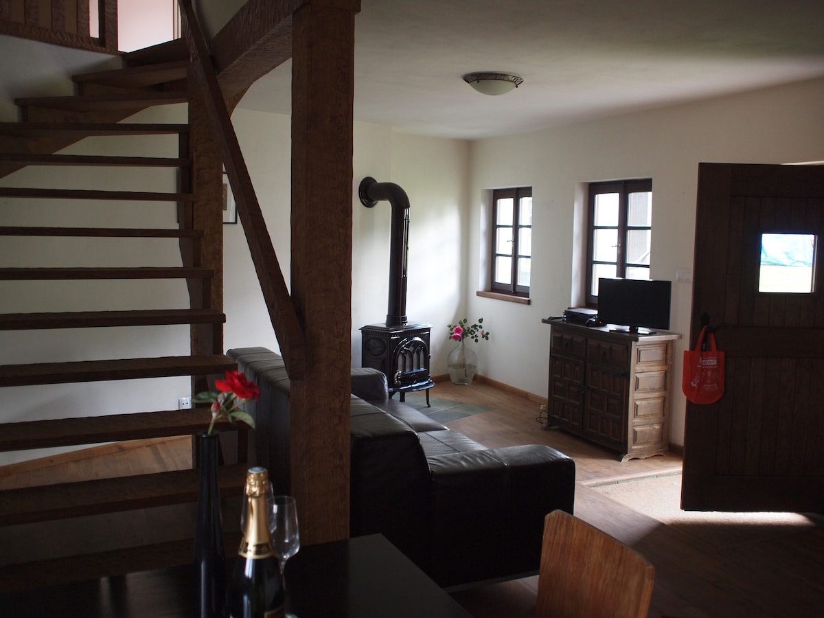 Come and experience the peace and quiet of a country life in our recently renovated accomodation located one hour south of Prague in the beautiful South Bohemian countryside. Enjoy nature through; a walk in the woods, enjoy a fire under the stars, wildlife sightings..a true urban escape. Experience the best of rural living - with all the comforts of home. Stay, rest and relax or take a trip to one of the many interest points located near by! Also possible to reach by public transport.