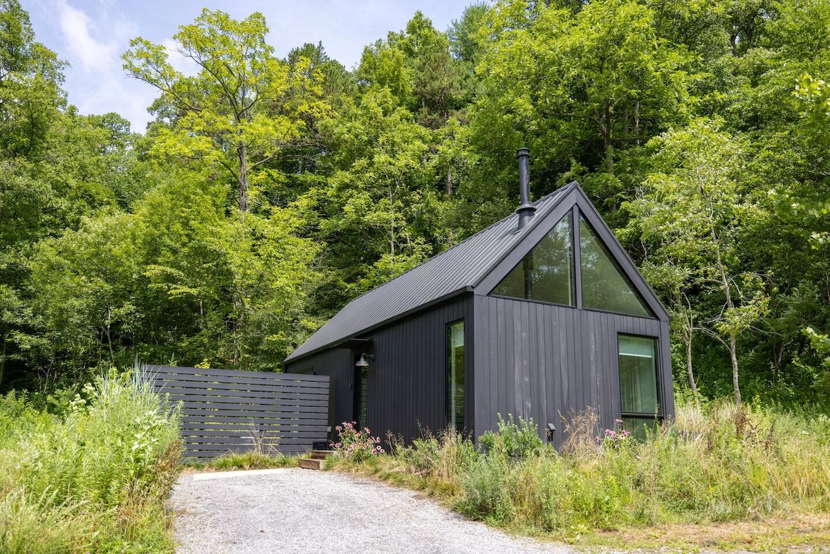 Cabin/Tiny Home. Relax & enjoy amazing mtn. views, 200 acres of trails, woods, pastures, farm, & fields. HURRICANE HELENE: TRAILS ARE NOT COMPLETELY ACCESSIBLE NOW DUE TO HELENE. Our trails & woods have been ravaged with 100's of trees down. Many trails are still not cleared. Our 1.5 mile upper ridge trail loop and one river trail are now open. Pastures and fields are mostly cleared and all areas around the cottage are completely cleared with amazing long range views of fields and mountains.