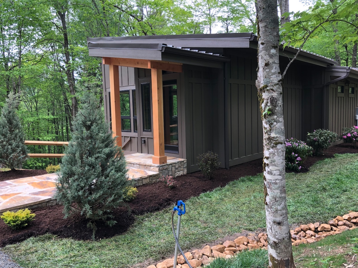 A fabulous place for two! This mod one bedroom space will have you question larger home living. It has everything a couple needs for settling in and staying awhile. Privately situated and surrounded by trees, The Valley Overlook is the perfect place to unwind. Just a short 20 minute drive to downtown Asheville, this place gives you the perks of nature with easy access to urban activities.