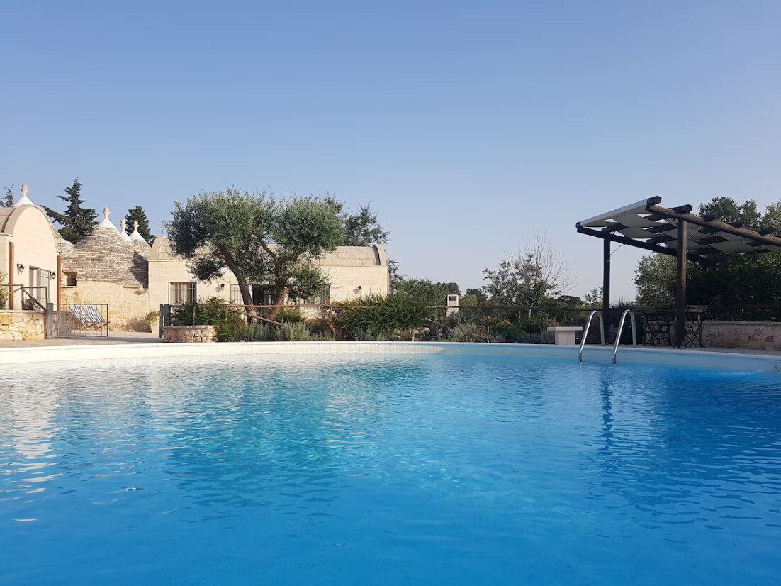 Charming complex consisting of four stone trulli with private pool, garden with lawn and in the shade of olive trees, completely renovated in 2021 immersed in the Apulian countryside. The complex is equipped with all amenities. Our trulli consist of a kitchen/ living room, a double bedroom, a twin room with the possibility to turn it into a double bed, a single bedroom and two bathrooms with shower.