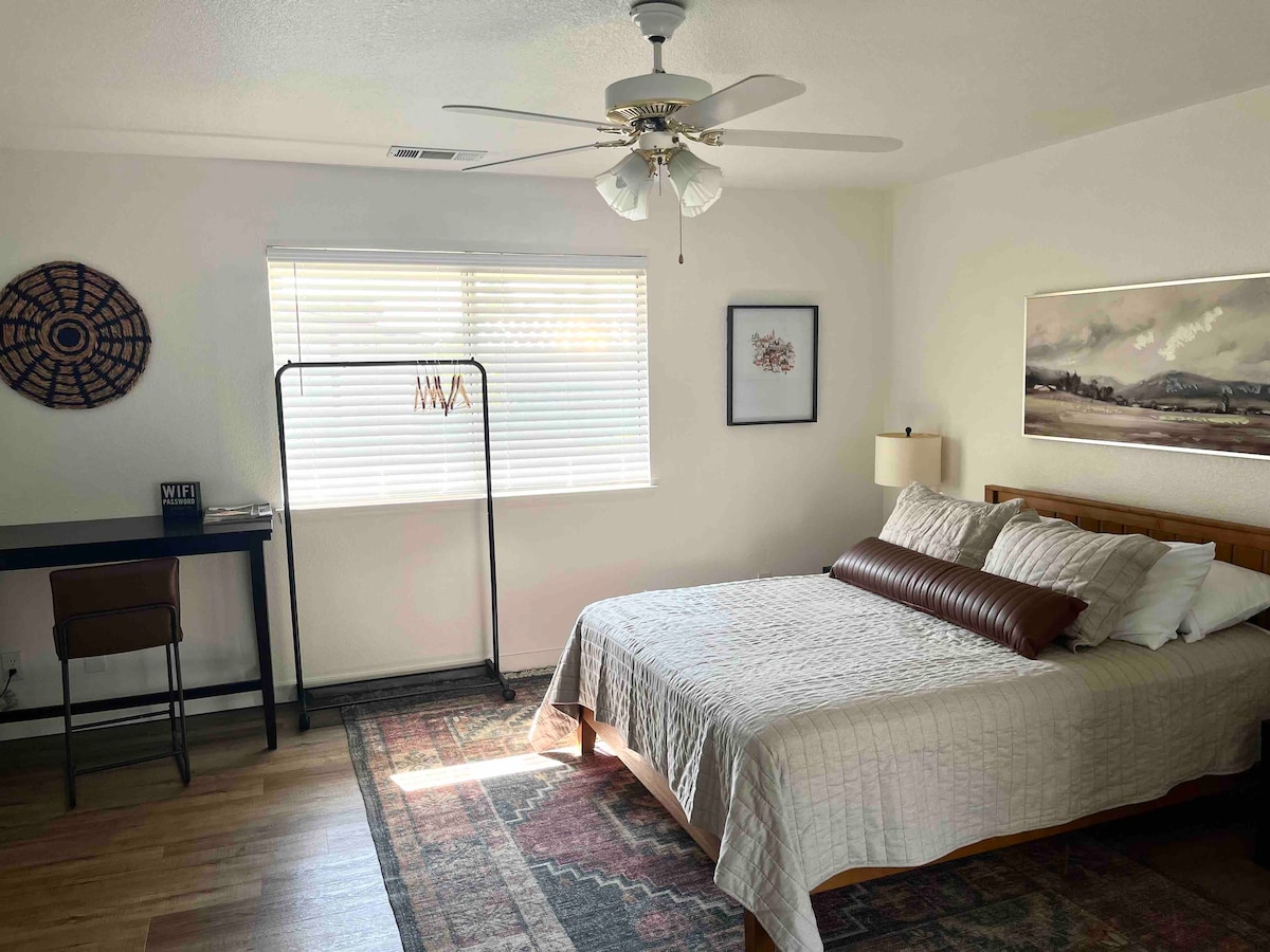 Our stunning guest suite has its own private entrance & outdoor space. We're located in a quiet and safe neighborhood, less than 10 minutes from shops and restaurants. This space is modern yet comfortably furnished, and offers the best mountain and sunset views in the city. Whether you are visiting family, attending a conference, adventuring in Shasta County or simply getting away, this suite offers everything you need to comfortably enjoy your stay.