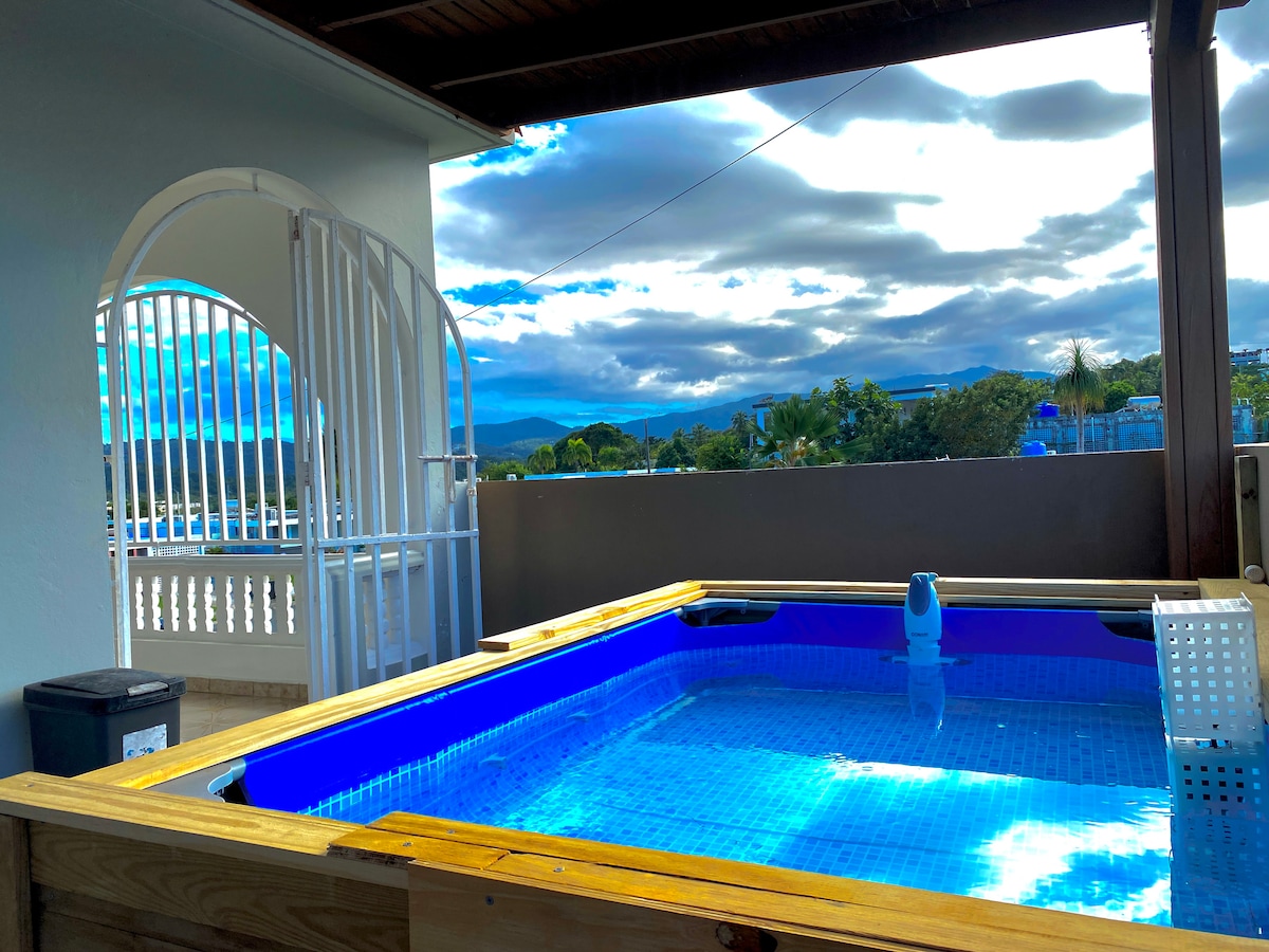 On a hilltop in the foothills of El Yunque Rainforest this is a private oasis. Come enjoy amazing views Enjoy both the beaches and cool rivers, both are less than 15 mins away. Larger parties can also rent the Loft for a combined maximum capacity of up to 6 people. 45 min from the airport. Even though the location is off the beaten path, guests are only 5 miles from the beautiful beaches and town of Luquillo. Its close to island attractions such as the ferry to Vieques and Culebra