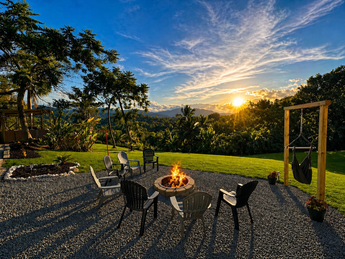 Private retreat in Luquillo surrounded by lush tropical landscape and views of El Yunque National Forest. Relax on private acres filled with native flora & the soothing songs of Puerto Rico’s beloved coquí frogs at sunrise & sunset. 15 min from Luquillo Beach, the famous Kioskos, El Yunque hiking trails. 30 min to the ferry to Culebra & Vieques. Enjoy nearby adventures like jet skiing, zip-lining, horseback riding, boating, & ATV tours while returning to a peaceful & private tropical escape.