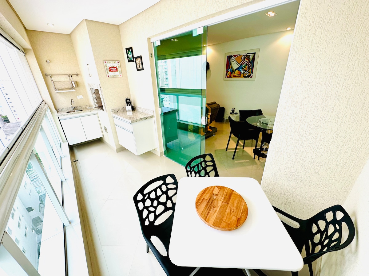 Enjoy the serenity of the seaside in this cozy apartment in Pitangueiras Guarujá. With stunning panoramic views it offers beach service, modern décor, new appliances and kitchenware, and a garage. Relax in the bright living room or on the balcony with the best ocean views. A fully equipped kitchen and a 55-inch smart TV are included. Whether for a family vacation or a romantic getaway this seaside retreat is the perfect choice. Book now and immerse yourself in the beauty of Guarujá's best beach.