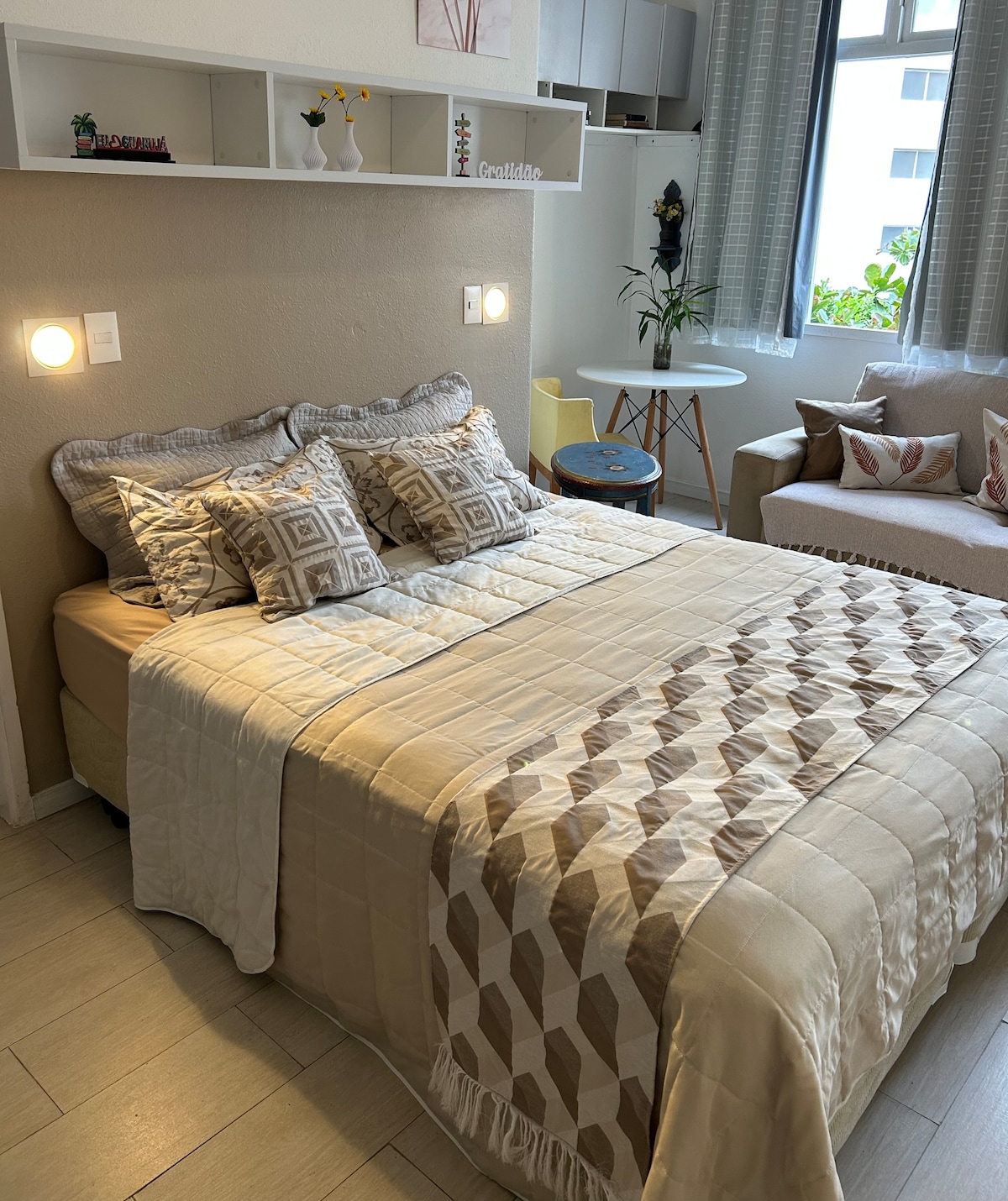 Imagine acordar com o som das ondas, caminhar até a areia em apenas 50m e aproveitar a mais charmosa faixa da praia de Pitangueiras, famosa por sua infraestrutura impecável, rodeada por bares, restaurantes, farmácias, mercados e lojas. Localizado em frente à delegacia de polícia, nosso studio oferece um diferencial incomparável: segurança 24h que permite que você caminhe sem preocupações de dia ou à noite. Nosso studio está pronto para seu lazer ou seu home office. Venha nos conhecer!!!