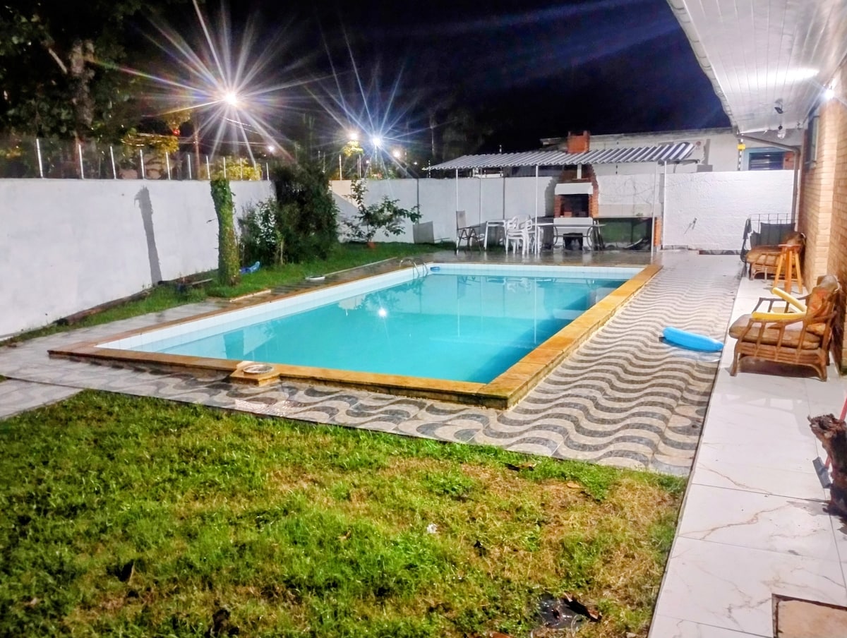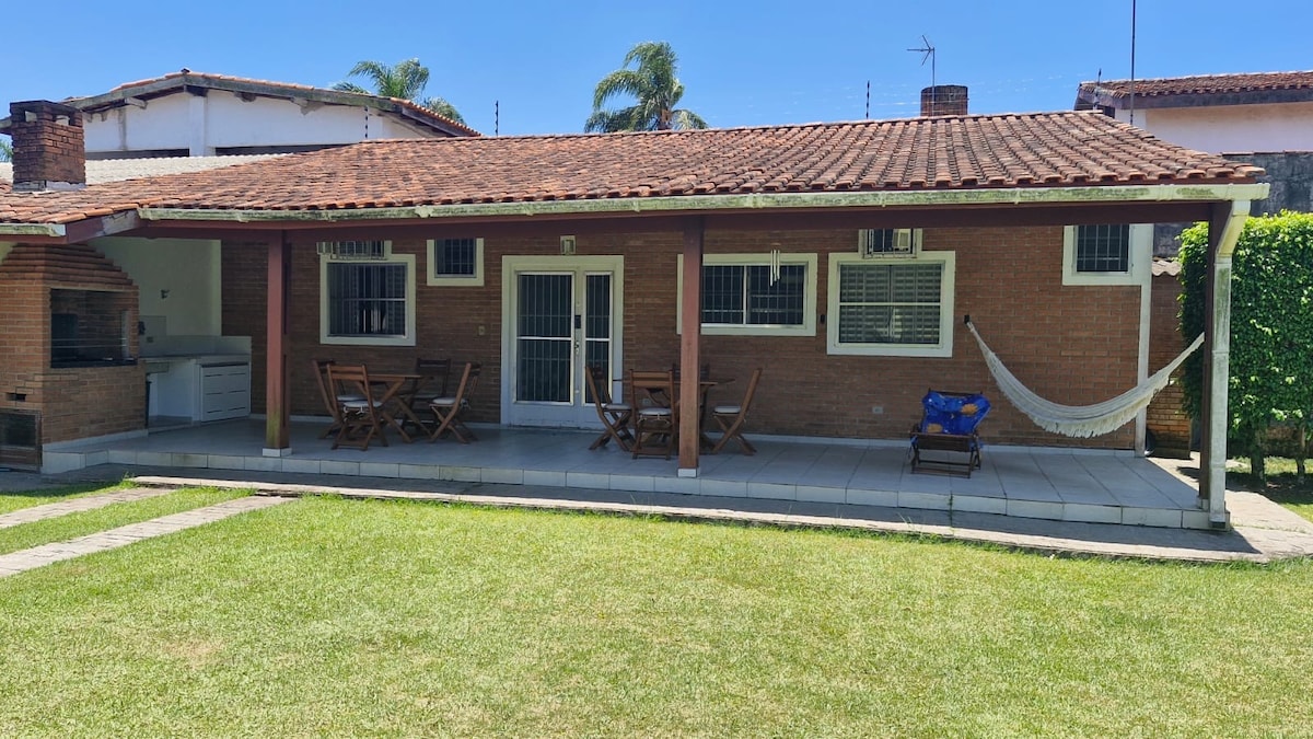 Casa com piscina e churrasqueira PRIVATIVA, 60 metros da Praia do Tombo ao lado da mata atlântica, com 02 vagas de garagem coberta e segura. A única PRAIA DO LITORAL SUL com título de bandeira azul (certificado internacional de qualidade da praia) unindo tranquilidade da mata com o agito da praia em um só lugar!! Local seguro e ideal para famílias passarem dias agradáveis