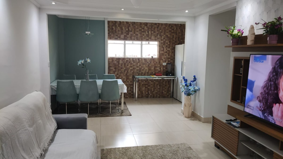 Delightful family condominium of 8 units at the end of Praia da Enseada, one of the safest places in Guarujá. Our unit has 3 bedrooms, one of which is a double suite, living room, terrace, kitchen and service area. Apartment on the ground floor with excellent accessibility, without steps and with safety bars in the bathrooms. Private garage in front of the terrace with a pet friendly garden. Our garden facing the sea has the most beautiful sunset in all of Guarujá!