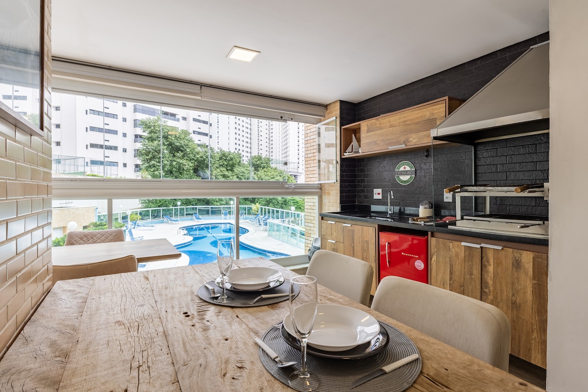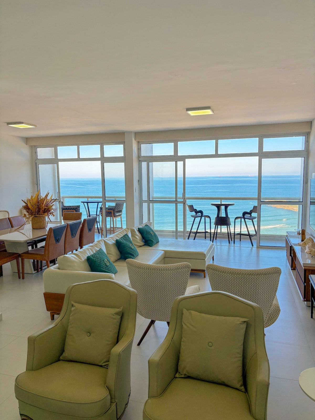Enjoy the serenity of the seaside in this cozy apartment in Pitangueiras Guarujá. With stunning panoramic views it offers beach service, modern décor, new appliances and kitchenware, and a garage. Relax in the bright living room or on the balcony with the best ocean views. A fully equipped kitchen and a 55-inch smart TV are included. Whether for a family vacation or a romantic getaway this seaside retreat is the perfect choice. Book now and immerse yourself in the beauty of Guarujá's best beach.