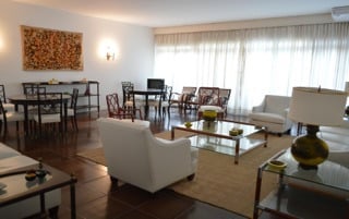 A decoração é muito aconchegante e suave, apartamento recém reformado, confortável, 100m²! Varanda na Suíte e na Sala. Mobiliário totalmente novo! Suite com cama de casal, dormitório com duas camas de solteiro, bicama na sala, 1 cama no quarto de empregada. 1 vaga para carro, serviço de guarda sol e cadeiras na praia. Possue ar condicionado em cada dormitório!