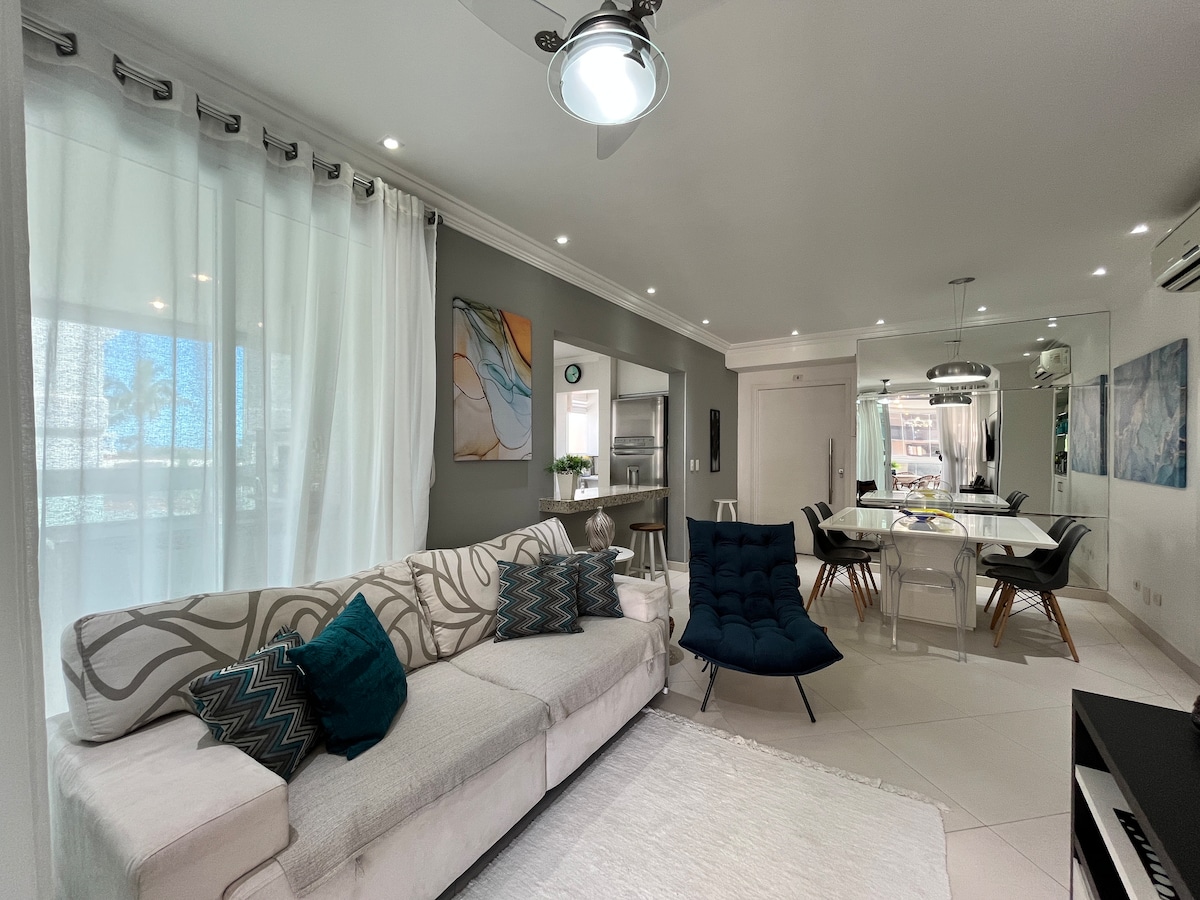Enjoy the serenity of the seaside in this cozy apartment in Pitangueiras Guarujá. With stunning panoramic views it offers beach service, modern décor, new appliances and kitchenware, and a garage. Relax in the bright living room or on the balcony with the best ocean views. A fully equipped kitchen and a 55-inch smart TV are included. Whether for a family vacation or a romantic getaway this seaside retreat is the perfect choice. Book now and immerse yourself in the beauty of Guarujá's best beach.