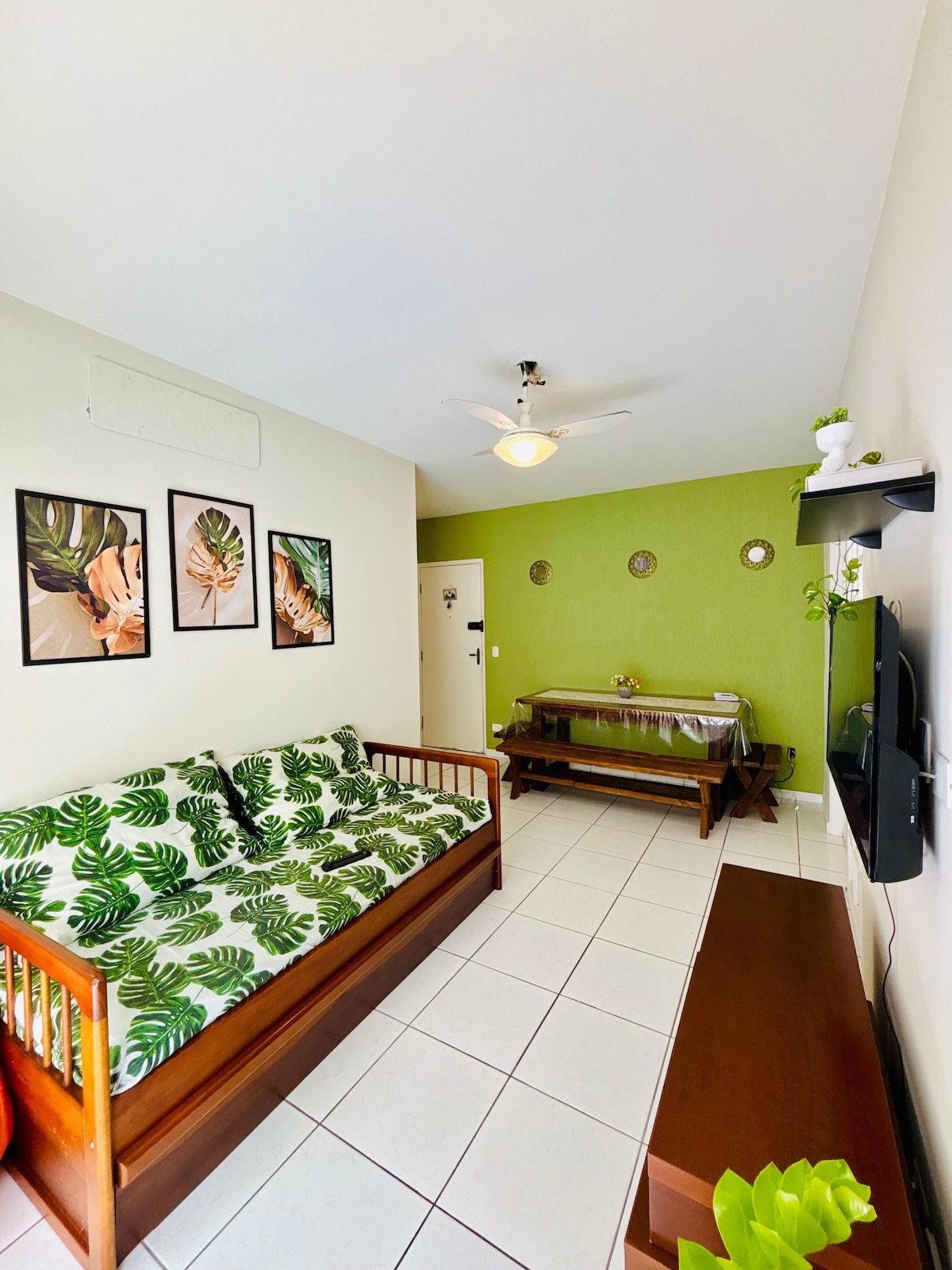 Olá querido(a) hóspede, Estamos loucos para recebê-lo(s) em nosso apê! O condomínio, além de proporcionar segurança 24hrs e comodidade, também conta com serviço de limpeza diária e uma linda piscina com cachoeira. O apê dispõe de 2 vagas cobertas no estacionamento, varanda gourmet, 3 AC´s, fina decoração, sala de estar, sala de TV, 1 suíte, 2 banheiros e WI FI
