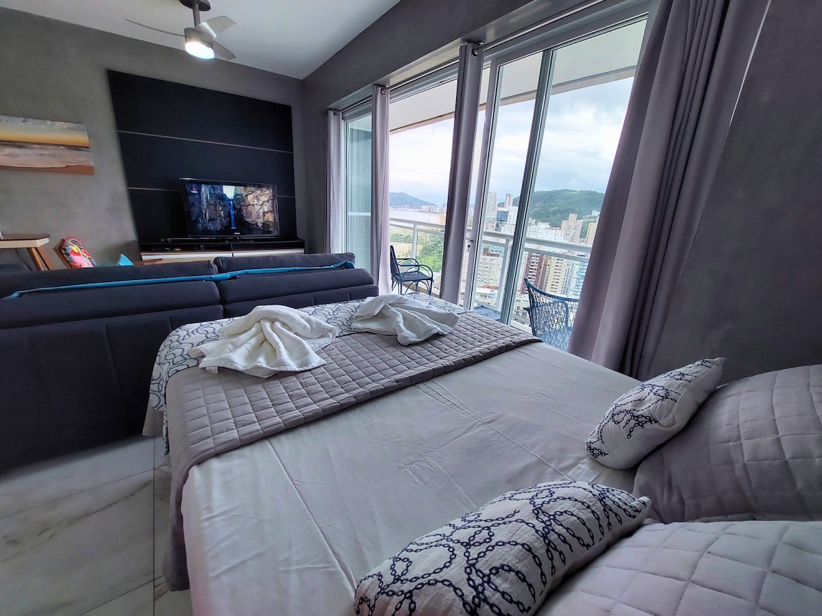 30 mts da praia apenas! Apto lindo ! Próximo ao shop La Plage e de restaurantes , chopperias etc , na mais nobre e segura região do Guarujá!Ao lado do mar, vc poderá fazer passeios e compras a pé! Bancada americana c/ cooktop cama queen size c/qualidade de hotel. Ventiladores teto e portátil excelentes! Garagem com manobrista 24hs para sua segurança e comodidade ,Wifi e TV a cabo Acomoda 4 adultos e 1 criança até 12 anos Obs Box do banheiro de 1,40 x1,10 nao recomendo p/pessoas acima de 120kg