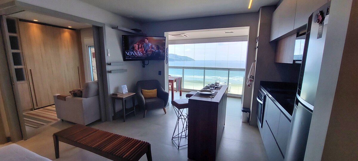 Pé na areia, frente total para o mar com varanda: som das ondas, pássaros, paisagem de tirar o fôlego com vista espetacular. Esse é um apartamento da grife "The Perfect View" -- sempre vistas perfeitas com estilo. A varanda é integrada com uma ampla sala, com vista para o mar. Decorado com design exclusivo oferecendo experiencia única para relaxar ou trabalhar à distância -wi-fi de alta velocidade , ar condic. em todos os cômodos, smart TVs e home office. Uma vaga na garagem com manobrista.