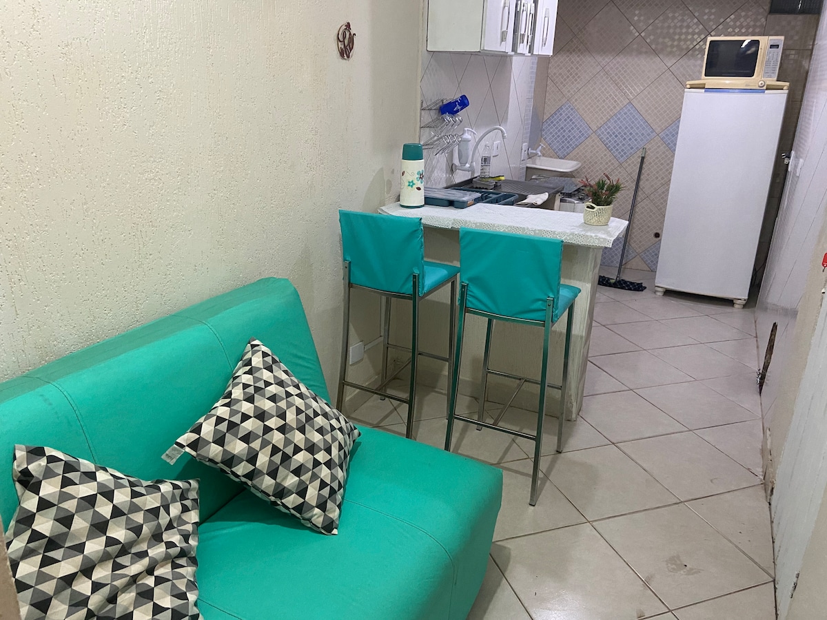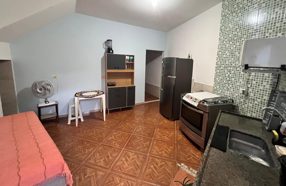 Welcome to the enchanting retreat in Beco da Luz! This space, located in the Guarujá favela, offers 1 bedroom, a living room integrated with the kitchen, bathroom, and laundry. We do NOT have a garage. High-speed Wi-Fi, TV, and a fully equipped kitchen are provided. Close to the bus station (700m) and beaches such as Pitangueiras (2.5km), Astúrias (4.1km), and Guaiúba (5km). Nearby, you'll find a market, bakery, and pharmacy. The house is situated within the alley alongside other family homes.