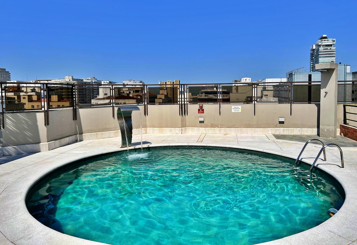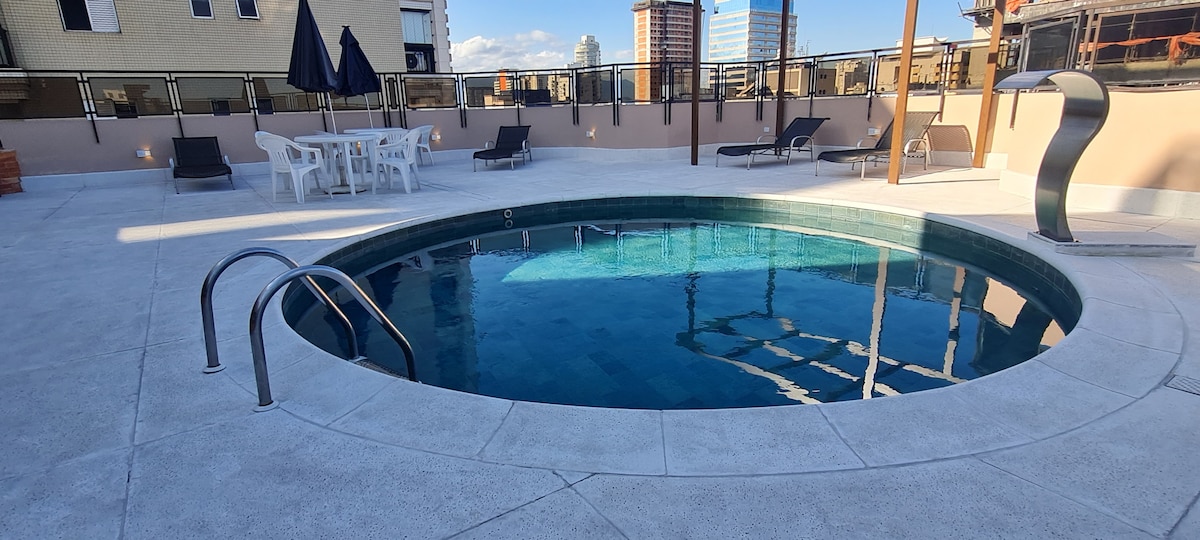 圣多斯 |公寓带泳池,距离Gonzaga海滩450米