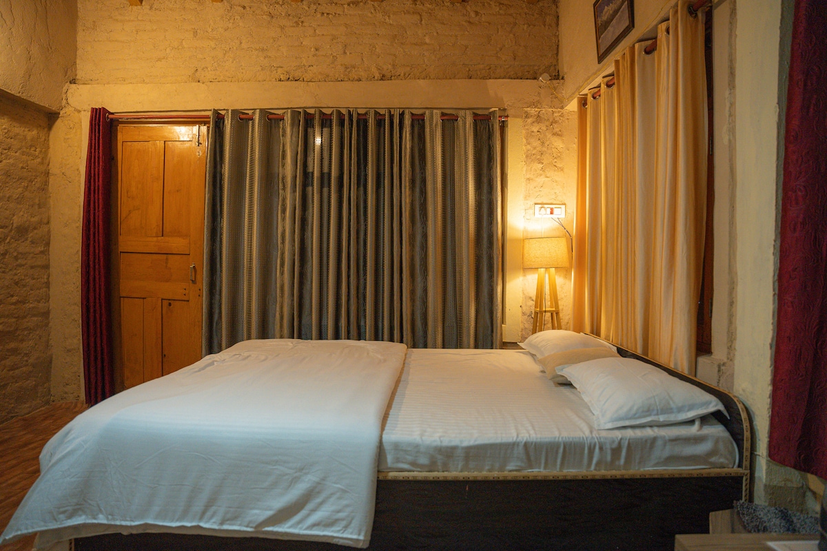 A frame intimacy, balcony sunrise, quiet corners. Made for couples who love slow mornings. Work ready, power ready, phone optional. Raya feels cozy and close. The balcony is the hero here, tea and first light every day. Simple interiors, warm wood, and a clear view set the tone. WiFi is fast, power is backed up, and there is a tidy workspace if you need it. Drive time from Delhi is nine to ten hours. Kathgodam is the nearest rail. Free parking. Best for couples and anniversaries.