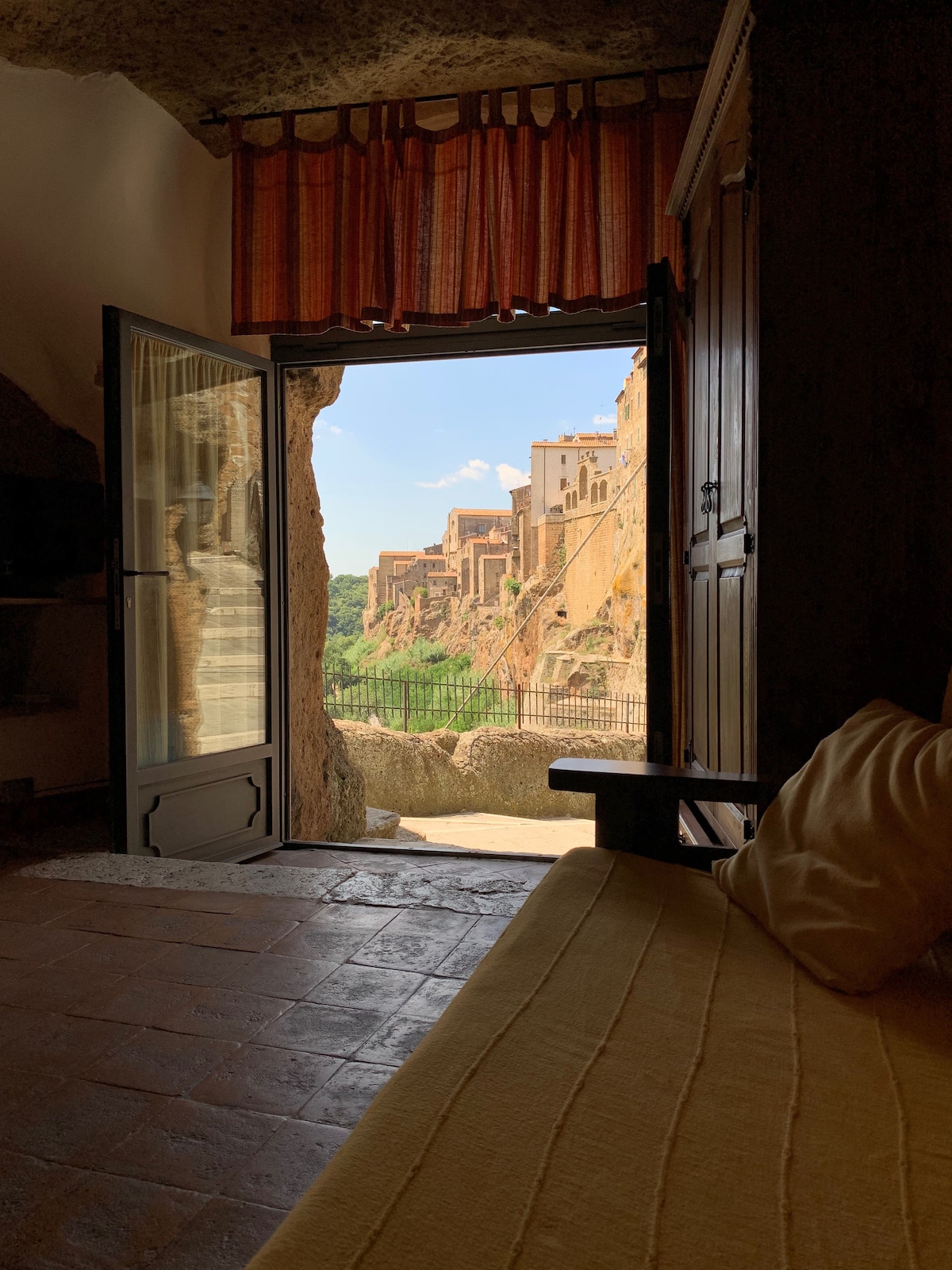 Monolocale nel cuore di Pitigliano, a pochi passi dalla Sinagoga e dalle Vie cave etrusche. L’appartamento offre una splendida vista sulla vallata del Meleta. É arredato con cura con mobili e oggetti di antiquariato e pregio. Offre una postazione per smart working. The house is located in the center of Pitigliano, just few meter far from the Synagouge and the “vie cave etrusche”. It offers an amazing view on the Valley of Meleta. The apartment is furnished with care and with fine antiques.