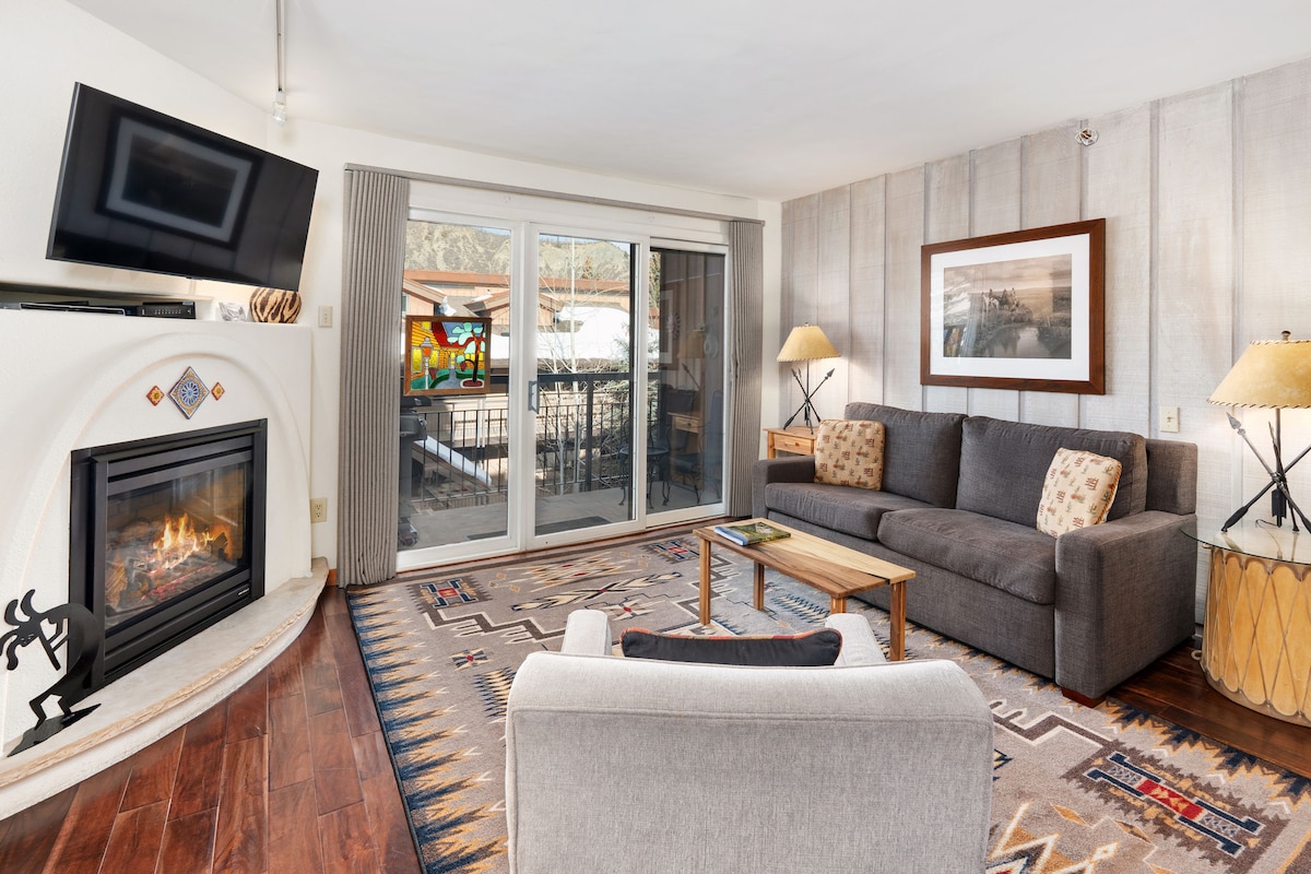 Discover Aspen’s most affordable luxury experience. Fully remodeled w/ new bedding, linens, luxury bath products & chilled Prosecco. Heated floors, centrl AC, outdoor patio, elec. blinds, Samsung and Sony TVs, W/D, fully-equipped kitchen, and modern bath. Cozy condo in downtown Aspen w/ free skier shuttle to Aspen Mtn. Affordable garage parking next door. Elevate your stay in an A+ location. Each of my properties offers an elevated experience & artwork by accomplished local artists.