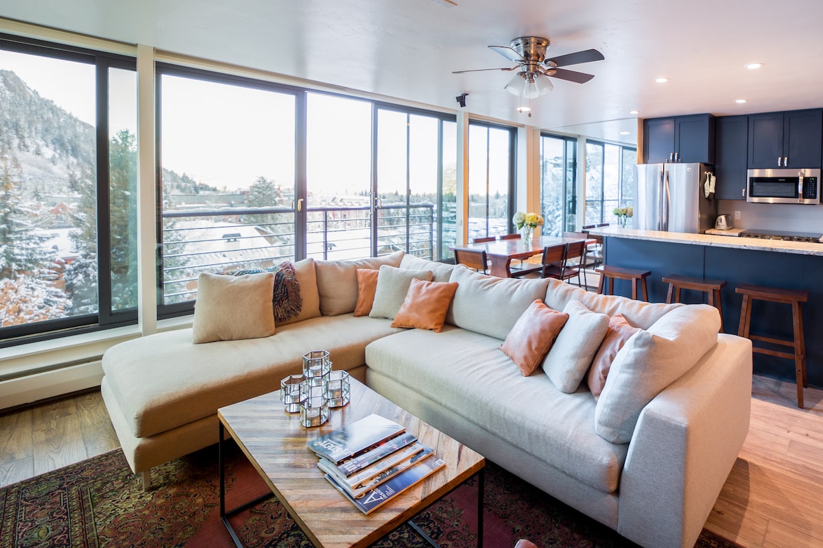 Stay in tasteful luxury just steps from Snowmass Village Express and Snowmass Mall. This beautiful studio condo is exquisitely furnished with an effortless blend of rustic and modern finishes, with tons of natural light from its six large windows. No need to drive to the ski hill! Put your gear on at the unit and walk just 100 feet to the slopes. In the summer, there's equally easy access to the best hiking and mountain biking in Snowmass. Welcome to your own alpine Paradise! #050722