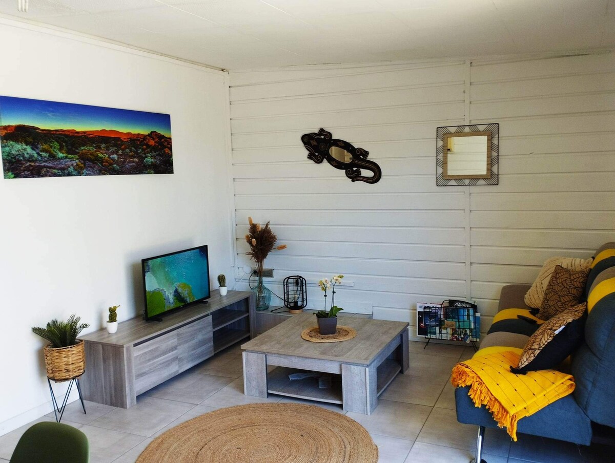 Bienvenue dans notre charmant bungalow à St Pierre, sur l'île de la Réunion ! Profitez d'une escapade unique dans un cadre naturel, où le confort rencontre la nature. Détendez-vous dans notre tiny house à l'ambiance cosy, dotée d'un intérieur chaleureux et d'un ameublement soigneusement sélectionné. Plongez dans la piscine pour vous rafraîchir, puis savourez des moments de convivialité autour du barbecue dans votre espace extérieur Bengalow réservé aux adultes N’est pas adapté aux - 16 ans