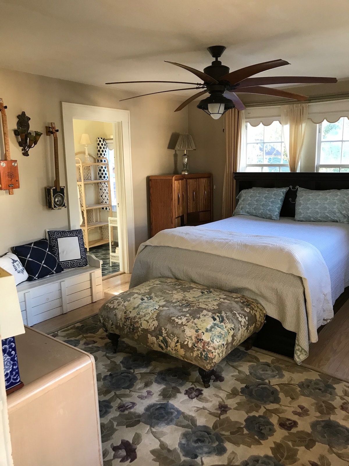 Keep it simple at this peaceful and centrally-located place. Cottage-style 400 sf guest studio, in quiet well-established neighborhood, with streets perfect for a walk or run. Minutes from shopping, ECU, and downtown Greenville. Your private space has a queen bed, pull out couch, full bath, microwave, small refrigerator, coffee maker and TV/WiFi with apps! Connected to house but has private entrance and parking. You'll love this warm and inviting space that we love to share with weary travelers!