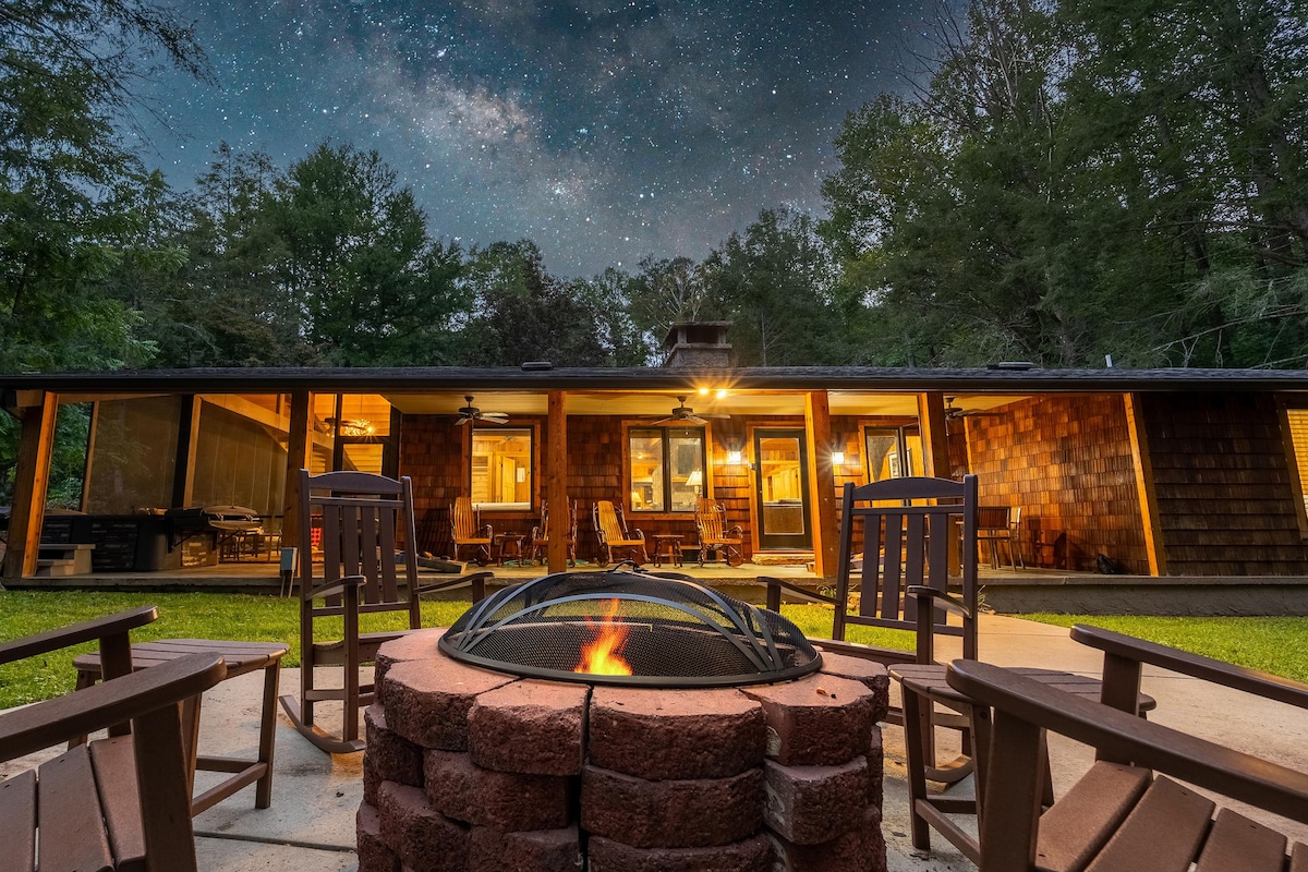 单层* 1英里长的私人车道* 篝火坑* 热水浴缸* 桑拿