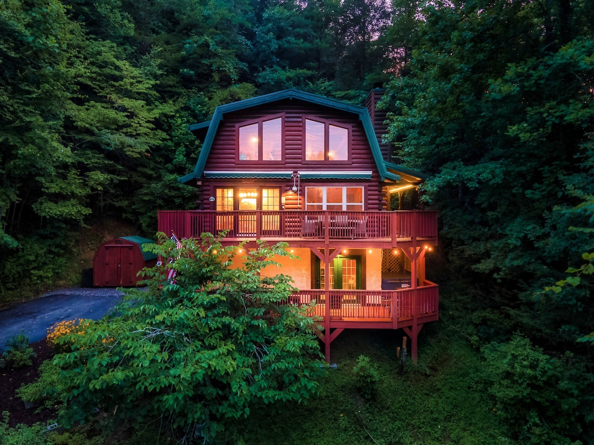 🌟2000 sq ft & 2 large decks 🌟Secluded hot tub 🌟Game room 🌟2 Private Acres 🌟Fast Wi-Fi 🌟Fire pit & Charcoal Grill Enjoy privacy while being conveniently located to great attractions: 9 miles-Downtown Gatlinburg *5 miles-Rocky Top Sports World 10 miles-Smoky Mountain National Park 15 miles-Dollywood, Pigeon Forge * 3 floors-there are stairs
