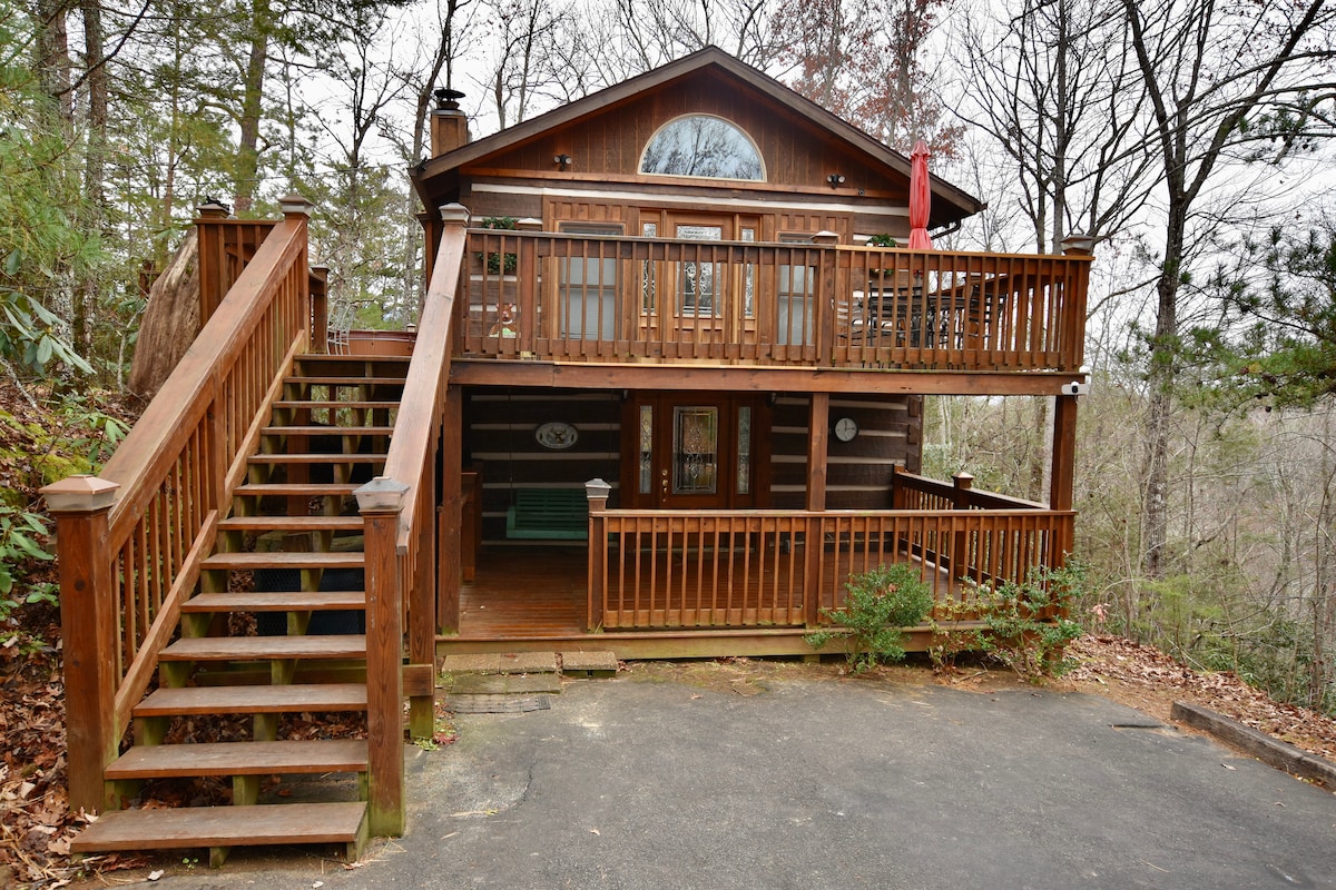 Come enjoy MooseontheLooseCabinTN Key Details..... ★ Mountain View! ★ GameRoom w/ ★Pool ★ AirHockey ★ PingPong ★ Foosball table ★ Theater area with 80" TV and surround sound ★ 5 person Hot Tub ★ Parking for 3 vehicles ★ Fireplace with remote ★ Ultra fast Wi-Fi - 330 Mbs ★ Ample space w/ 3 level cabin w/a bed + bath on each floor ★ 4 Decks + Large outdoor area ★ Fully equipped Kitchen ★ Propane BBQ Grill ★ 2 Pickleball Courts ★ 1 Mile to 18 hole Golf Course ★ Family Managed
