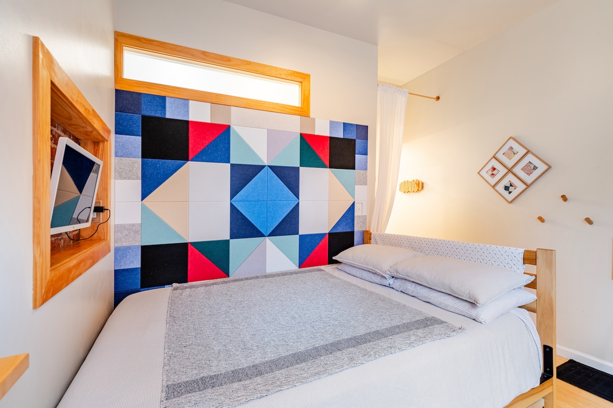 The Nesting Box is an ideal space to return to and recharge in after “free-ranging” locally. Comfortable, cool, and centrally located to the best of Butler Street. Designers collaborated to maximize the minimal space with creative comforts for experiencing "tiny living". Our shipping container addition led us to have 2 front 🚪. We welcome guests to our on-street private guest suite. Urban family homestead with 1 🐈⬛, 2 🐕, and 3 🐓 that resided with us for 5 years (recently rehomed to farm).