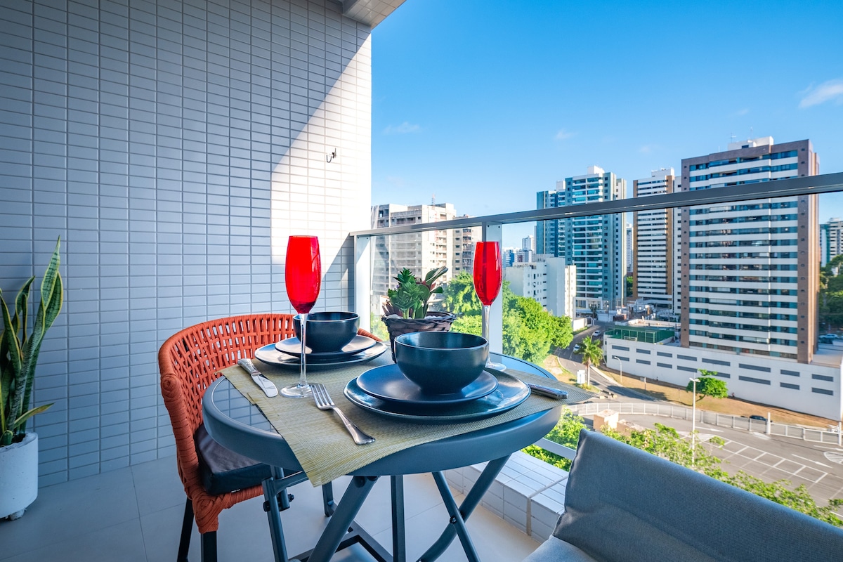 Apt com Vista, Piscina, Próximo Salvador Shopping