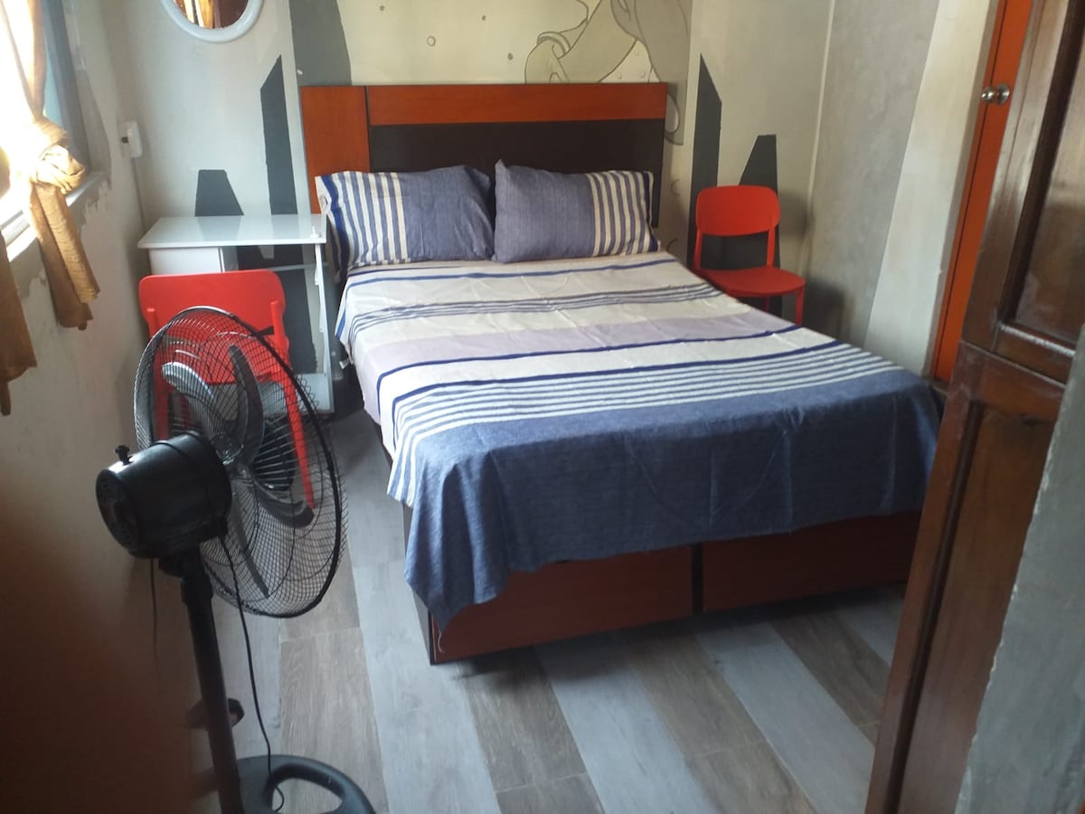 Habitación matrimonial en 3 piso ubicada en el centro cercana a los paraderos de transporte interprovincial , colectivos hacia Catacaos y múltiples negocios. El servicio incluye , la habitación,1 baño privado con ducha, salida independiente y CONEXIÓN WIFI . La vivienda, en su frontis, tiene cámaras de vigilancia para la seguridad de los residentes. No acepto modificaciones de viaje.