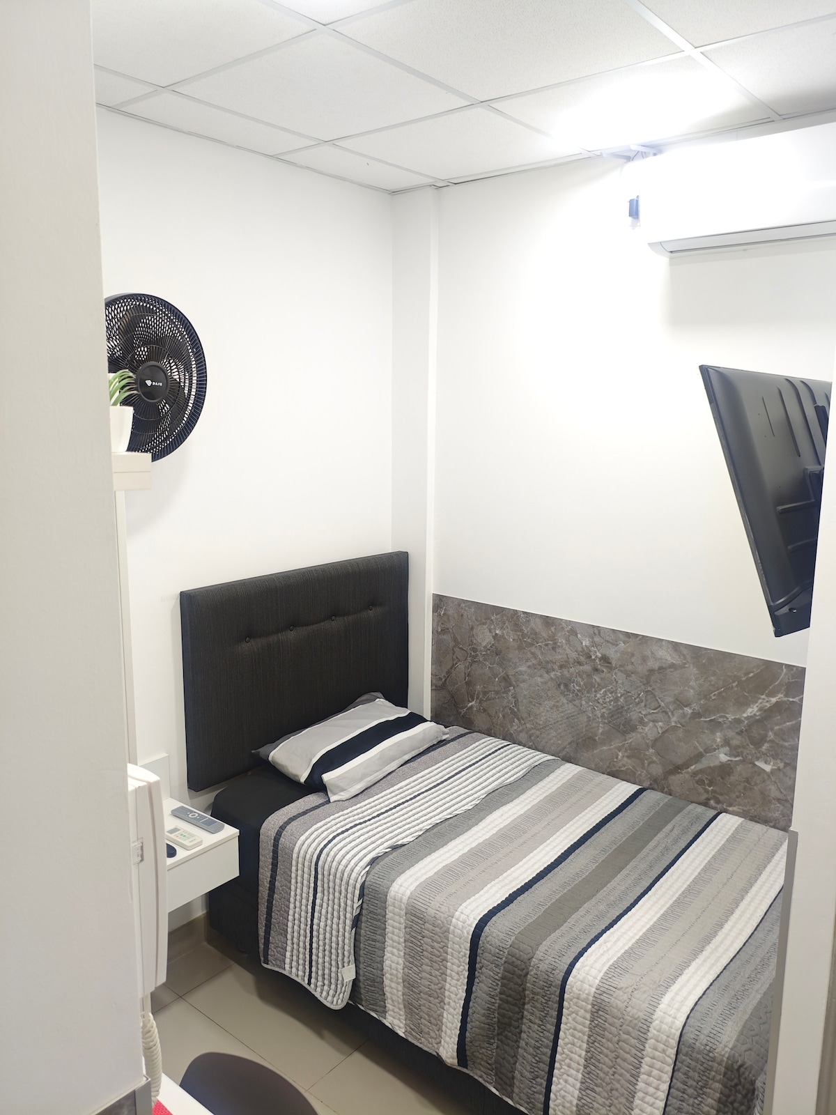 El Mini Departamento Ejecutivo ubicado en el Centro de Piura es muy seguro y silencioso para su descanso, está ubicado a 4 minutos caminando de la plaza de armas. Dispone de 1 dormitorio con 2 camas, wifi, aire acondicionado, ventilador, microondas, frigobar, hervidor y menaje; cuenta con plancha, TV de pantalla plana, zona de star y baño con ducha con agua caliente. Se encuentran a 8 minutos en taxi del aeropuerto internacional Capitán FAP Guillermo Concha Iberico.