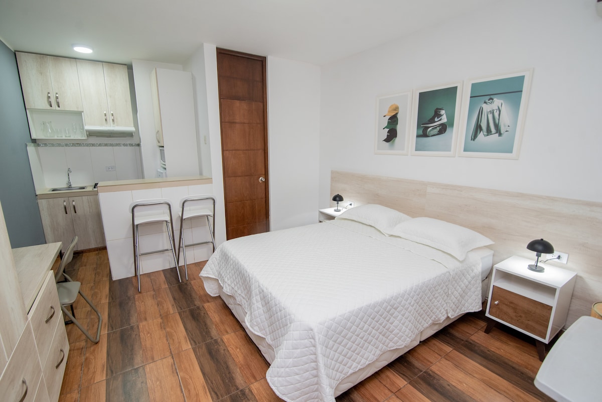 Son estudios modernos y nuevos, cuentan con todas las comodidades para hacer de su estadía placentera. Cuenta con un kitchenet que tiene refrigeradora, horno microondas y menaje; la habitación tiene una cama matrimonial ortopédica, aire acondicionado, un baño de primera con agua caliente todo el tiempo. Queda en una de las mejores Urbanizaciónes de Piura con seguridad las 24 horas, varios espacios de parqueo para vehículos. Cerca a centros comerciales y supermercados. Los Esperamos. Atte JP