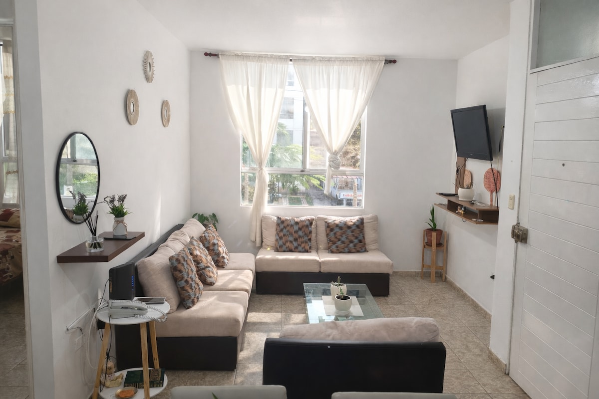 Relájate en este espacio tan tranquilo y elegante. ¡Descubre la belleza y calidez de Piura desde este moderno y acogedor departamento! Ubicado en el corazón de la ciudad, nuestro espacio te ofrece todo lo que necesitas para una estancia cómoda y memorable. Nuestro objetivo es hacerte sentir como en casa. Ya sea que vengas por trabajo o placer, este departamento es la elección perfecta para tu estancia en Piura. ¡Te Esperamos!