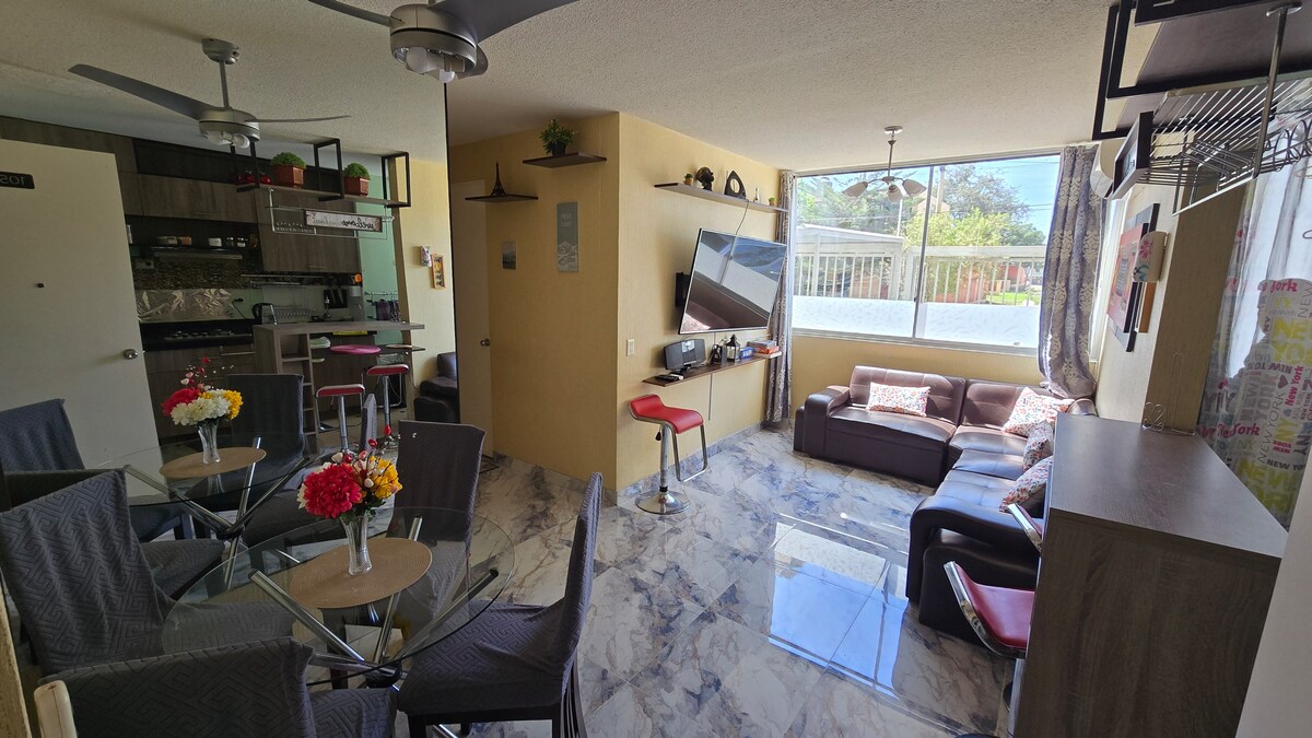 Funcional Departamento ideal para parejas o viajeros de negocios en una zona cerrada, tranquila y segura con múltiples centros comerciales y restaurantes cercanos. Disfruta del sunset en la tarde y una buena película en tu streaming favorito.