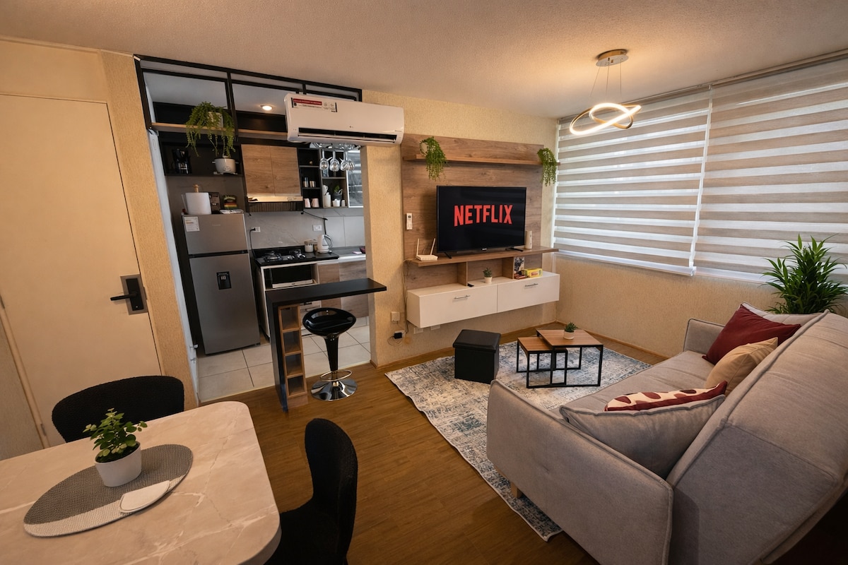Moderno y acogedor departamento con vista increíble. Disfruta de una estancia única en este elegante y moderno departamento, diseñado para brindarte comodidad y estilo. Ubicado en una excelente zona, este espacio es ideal para viajeros, parejas o personas en viaje de negocios que buscan un lugar acogedor. Este departamento es la combinación perfecta de confort, estilo y funcionalidad. Ya sea que estés de paso por la ciudad o planees una estadía más larga, te hará sentir como en casa.