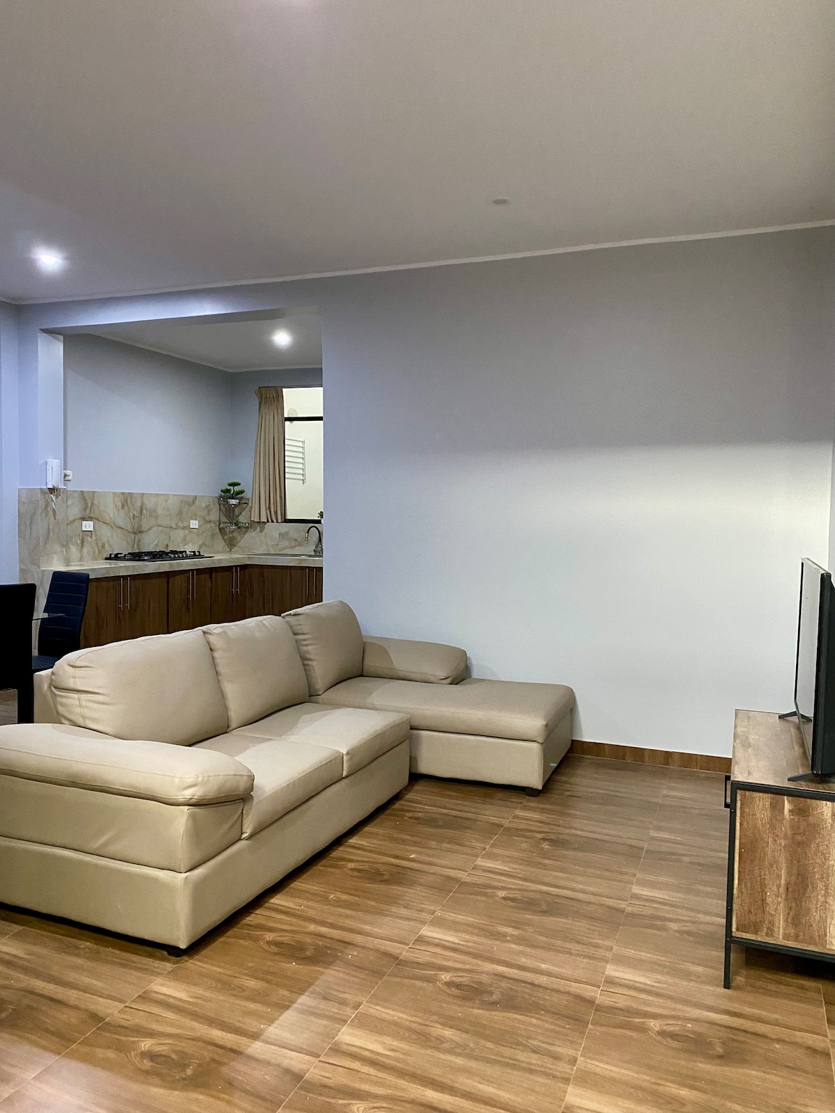 Departamento completo en Castilla (Miraflores/Country Club), zona segura y exclusiva de Piura. Tiene 2 habitaciones (cama 2 plazas y cama plaza y media), 2 baños (uno con ducha) y terma. Sala amplia amoblada y cocina equipada con encimera de 4 hornillas, lavadero, refrigeradora, ollas, sartenes y calentador de agua. WiFi rápido. Incluye cochera.