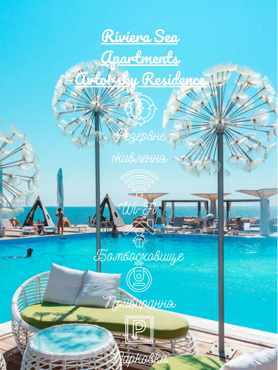 "Riviera Sea Apartments" — стильні апартаменти 44 м² на першому поверсі, всього за кілька хвилин від Чорного моря та ТРЦ "Рів’єра". Оснащені всім необхідним: кухня з газовою плитою, мікрохвильовкою, холодильником, кавоваркою, чайником, посудомийною машиною; спальня з двоспальним ліжком і диваном, кондиціонер, телевізор; простора гардеробна, ванна з душем і пральною машиною. Поруч пляжі, ресторани, басейни та зручна інфраструктура — усе для комфортного й незабутнього відпочинку.