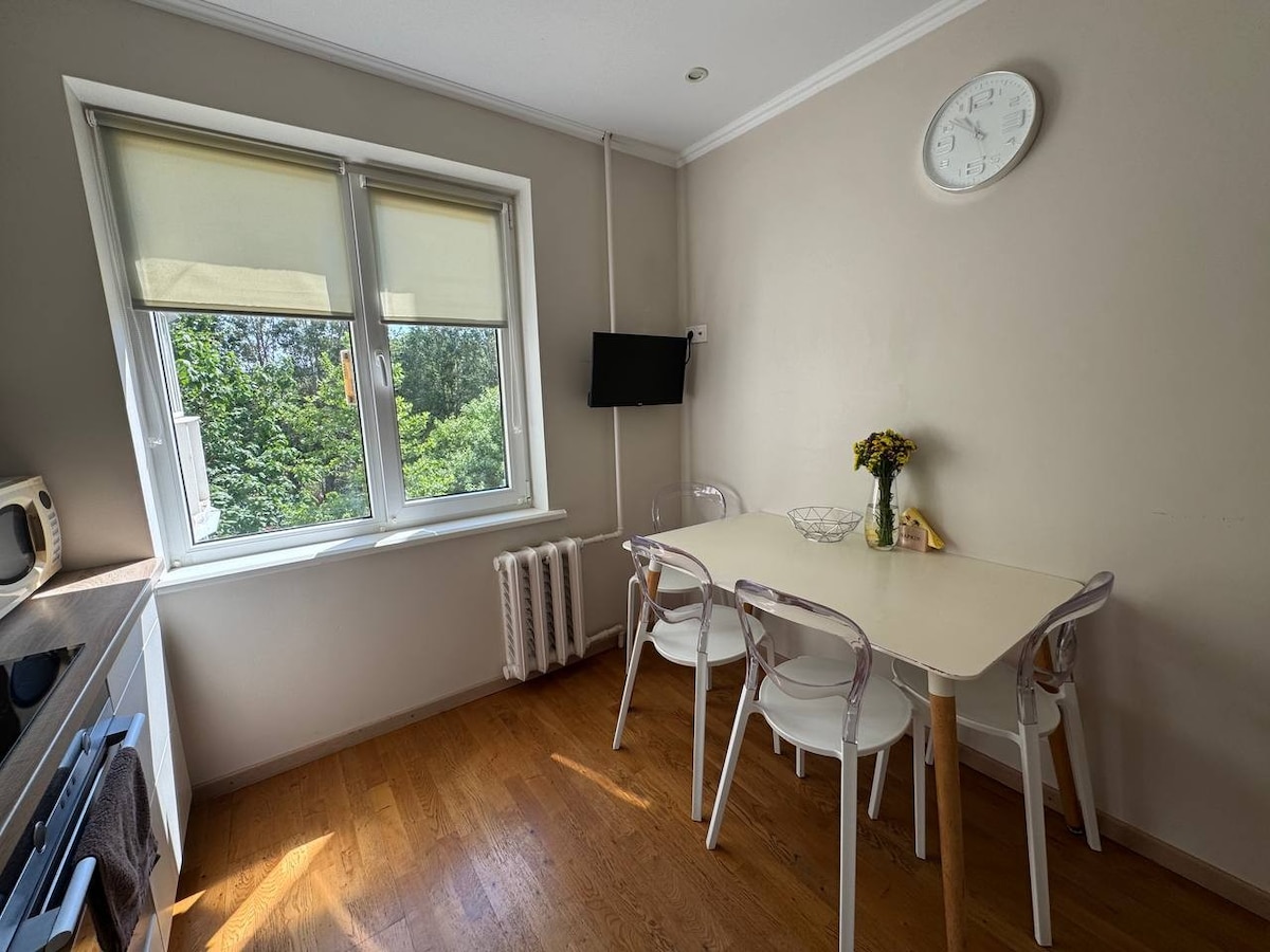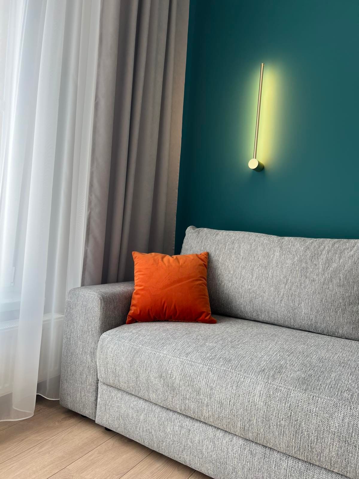 This spacious and bright studio is designed to accommodate 4 people. In the room: a bed, a wardrobe, a sofa for 2 people and a TV set. There is an iron and ironing board. The kitchen has all the necessary equipment, a dining table and 4 chairs. The bathroom has a walk-in shower with a rain shower, a washbasin, a toilet, a washing machine and a hairdryer. We provide towels, shower gels, shampoos, laundry detergent and other little things.