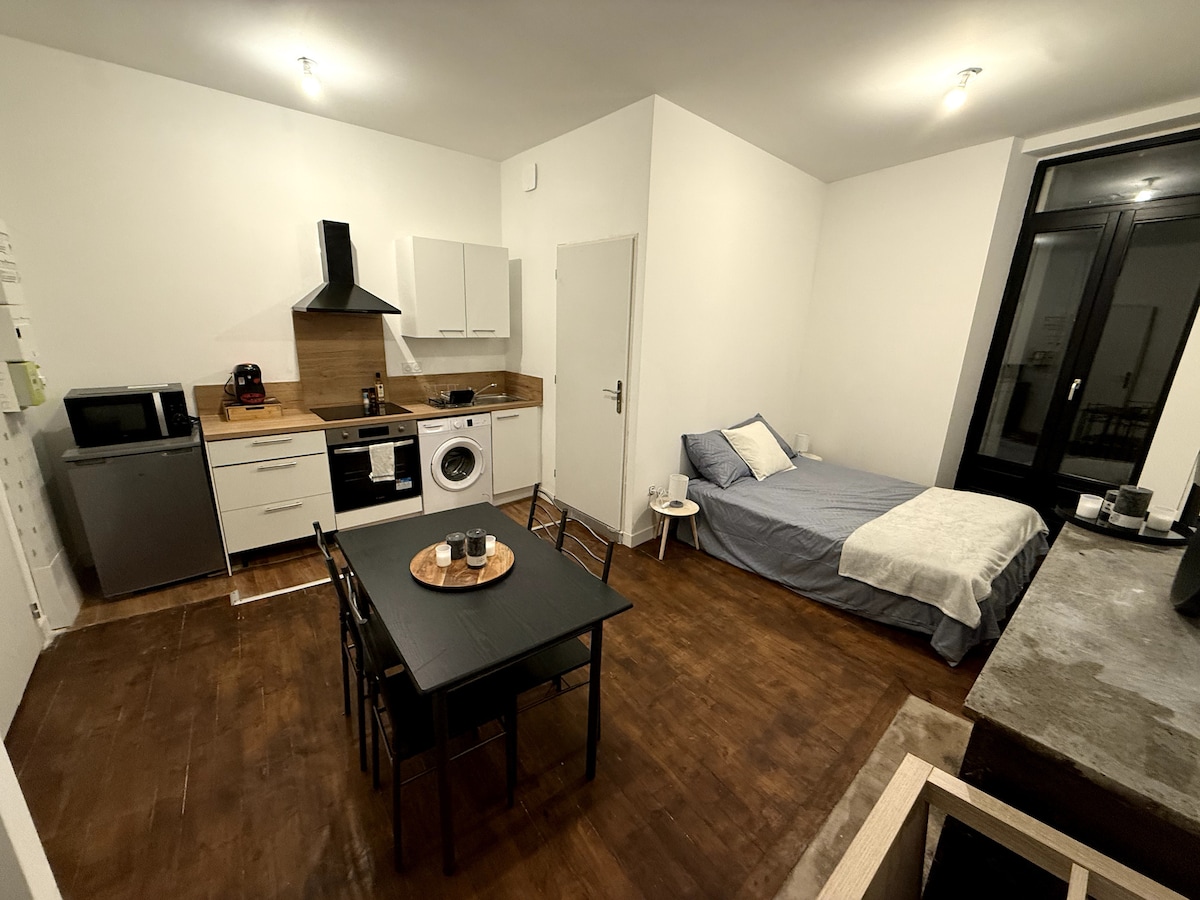 ✨ Studio cosy en rez-de-chaussée, au calme, dans une résidence sécurisée avec stationnement gratuit à l’intérieur. Idéalement situé en plein centre, à deux pas de Marques Avenue, des commerces, restaurants et cinéma. Transports et vélos en libre-service à proximité, gare à 10 min ( à pieds). Vous apprécierez sa terrasse donnant sur un joli parc, parfaite pour se détendre. Le logement dispose d’une pièce à vivre lumineuse, d’une cuisine séparée et d’une salle de bain avec WC.