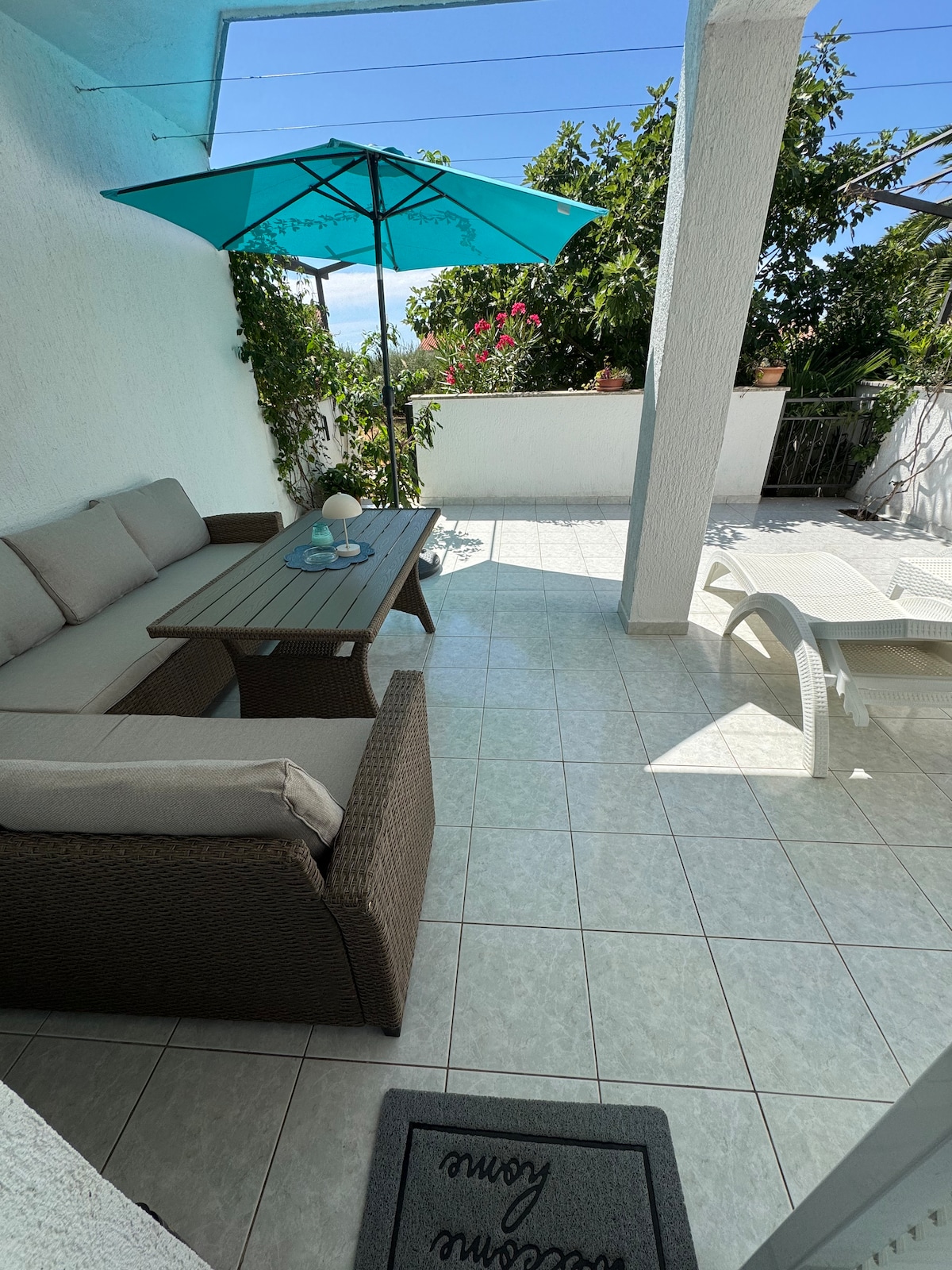 This lovely apartment is great for a family or a small group of friends since it's practical - it has two bedrooms and two bathrooms. The apartment is private, on the ground floor, and reached by an external staircase. Enjoy the sunny days laying on the deck chairs on the large terrace and barbecuing in the garden! It is situated in a small tourist village near the sea, and just a few kilometers from the town of Pula. It is a great choice for all those who enjoy the quiet, the sea and nature.