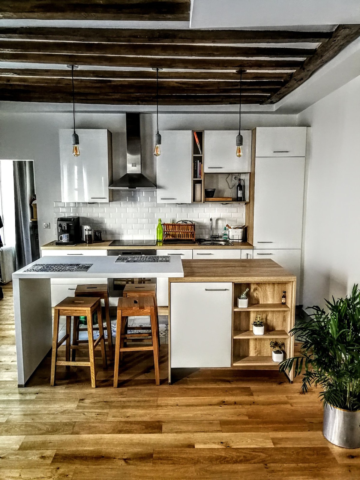 Ancienne menuiserie parisienne située en fond de cours au calme, entièrement rénovée. Nous avons souhaité garder l'âme de ce lieu. C'est pourquoi nous y avons gardé des briques d'origines, de plus comme vous pourrez le constater la décoration est volontairement faite de matériaux bruts afin de rappeler le passé artisanal du lieu. Nous espérons que vous vous y sentirez bien.