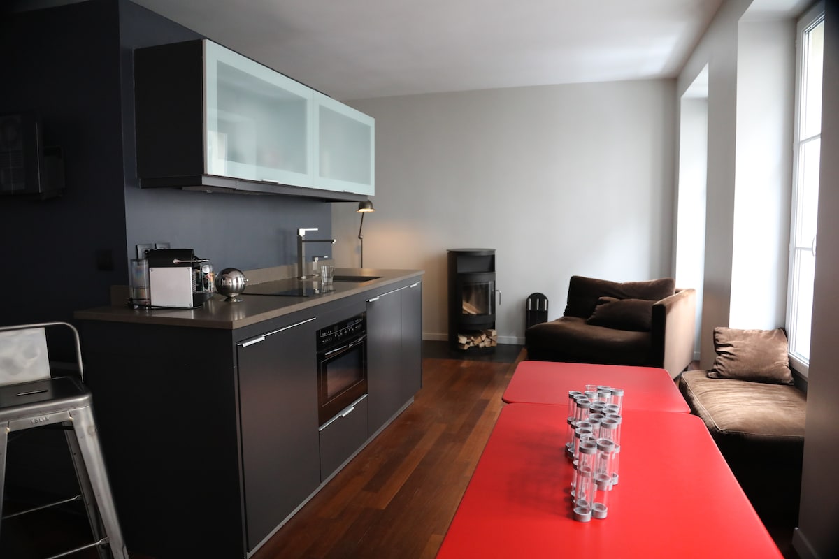 GET 20% OFF => www lemaraisapart fr Pay first night on A.i.r.b.n.b and we settle the rest of your stay at check in Contemporary design large loft studio 484Sq ft (2 rooms)with air conditioning, under 4 metres of ceiling, on the second floor, very quiet on private courtyard, large bed on a mezzanine, fully equipped kitchen separate toilets, small bathroom with shower next to Place des Vosge