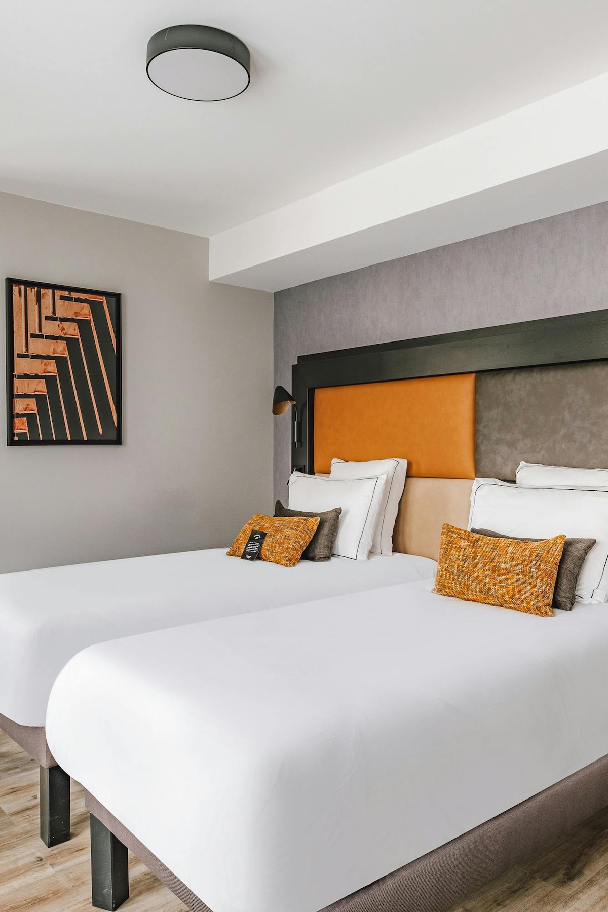 Quiet and comfortable, our 15sqm classic rooms are located on the courtyard or street side. They feature a 160 cm double or twin bed, sophisticated wood and black furnishings, tea and coffee-making facilities, and clever storage.