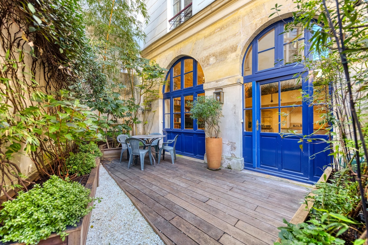 - Charming 60 sqm apartment - Prime location in the heart of historic Le Marais - 4 min walk to Filles du Calvaire & République metro stations - Secure historic building, ground floor on courtyard with patio - Sleeps up to 4 adults - One spacious souplex bedroom with en-suite bathroom - One double mezzanine bedroom, one bathroom with toilet - Comfortable living area with fully equipped open kitchen - Trendy, lively area with many restaurants and boutiques – very central