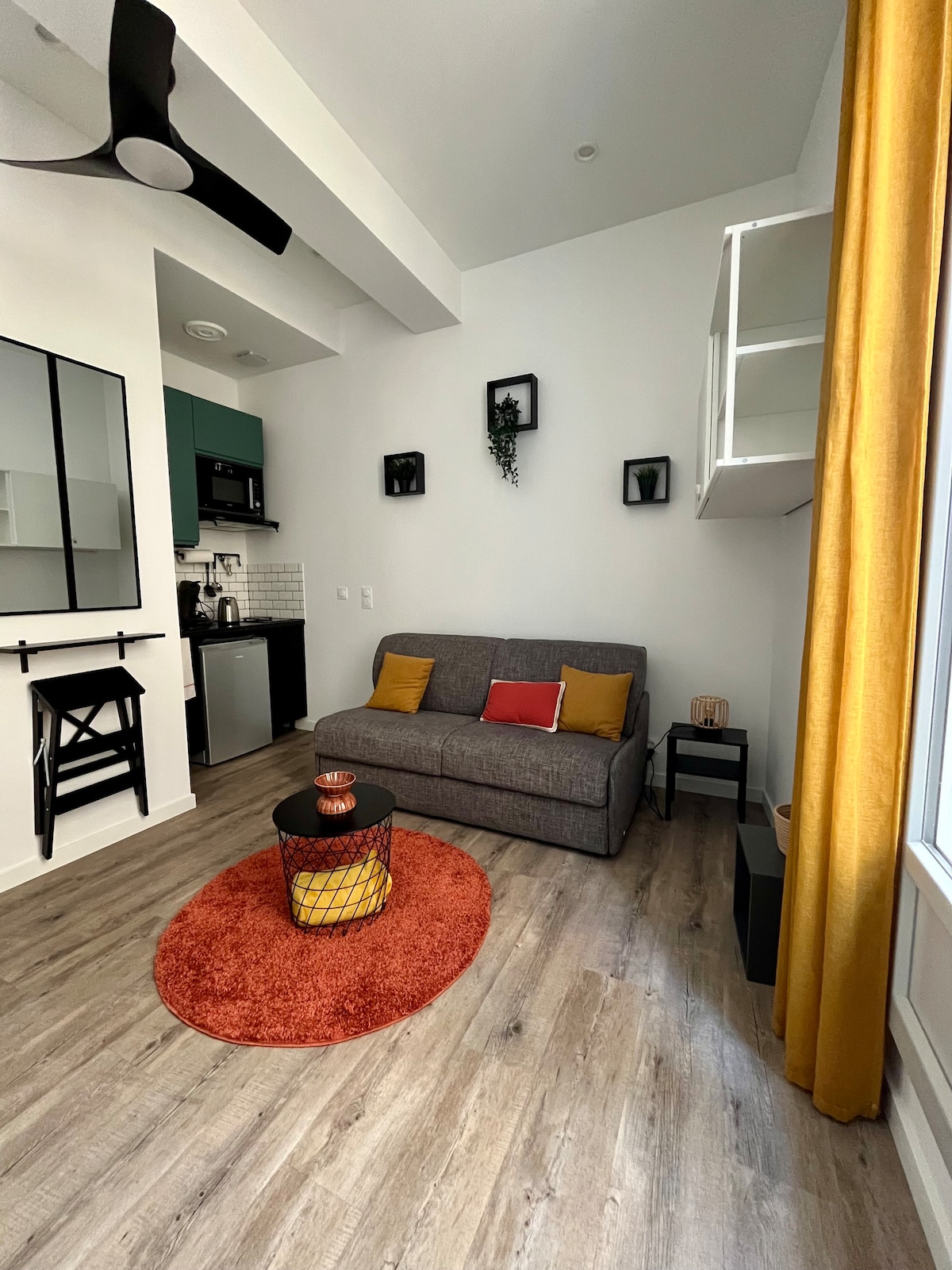 Welcome to the "Good spot" in Montpellier. 🏄🏻♀️ 💎Studio completely renovated in May 2024 with all the qualities of a star hotel room: air conditioning, broadband wifi, TV, quality bedding, design, new kitchen and bathroom. Surface area of 16m2 (ideal for 2 people) Large window overlooking courtyard 🛌 🛋️ 1 mezzanine ( bed 160x200) & 1 sofa bed (140x200) 🛍️ Hypercentre rue St Guilhem, quiet courtyard nearby: restaurant, shopping, bar 🏖️ beach - 15 min to enjoy the coast