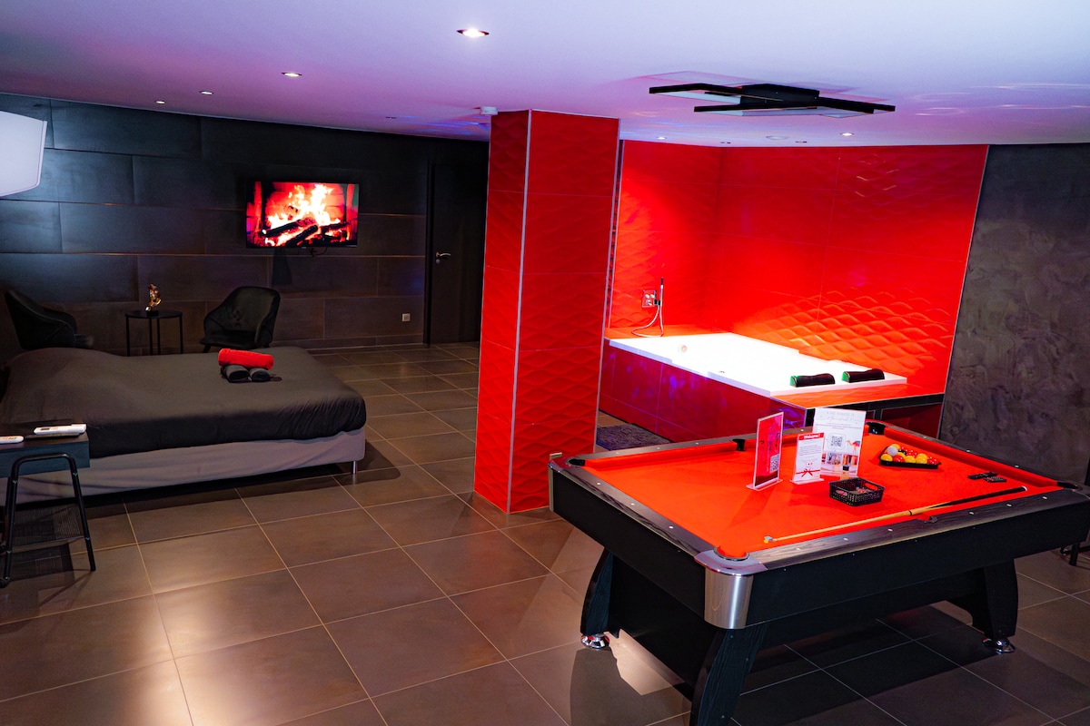带私人按摩浴缸、台球桌和阳台的 Loft 房源,距离斯特拉斯堡 10 分钟车程