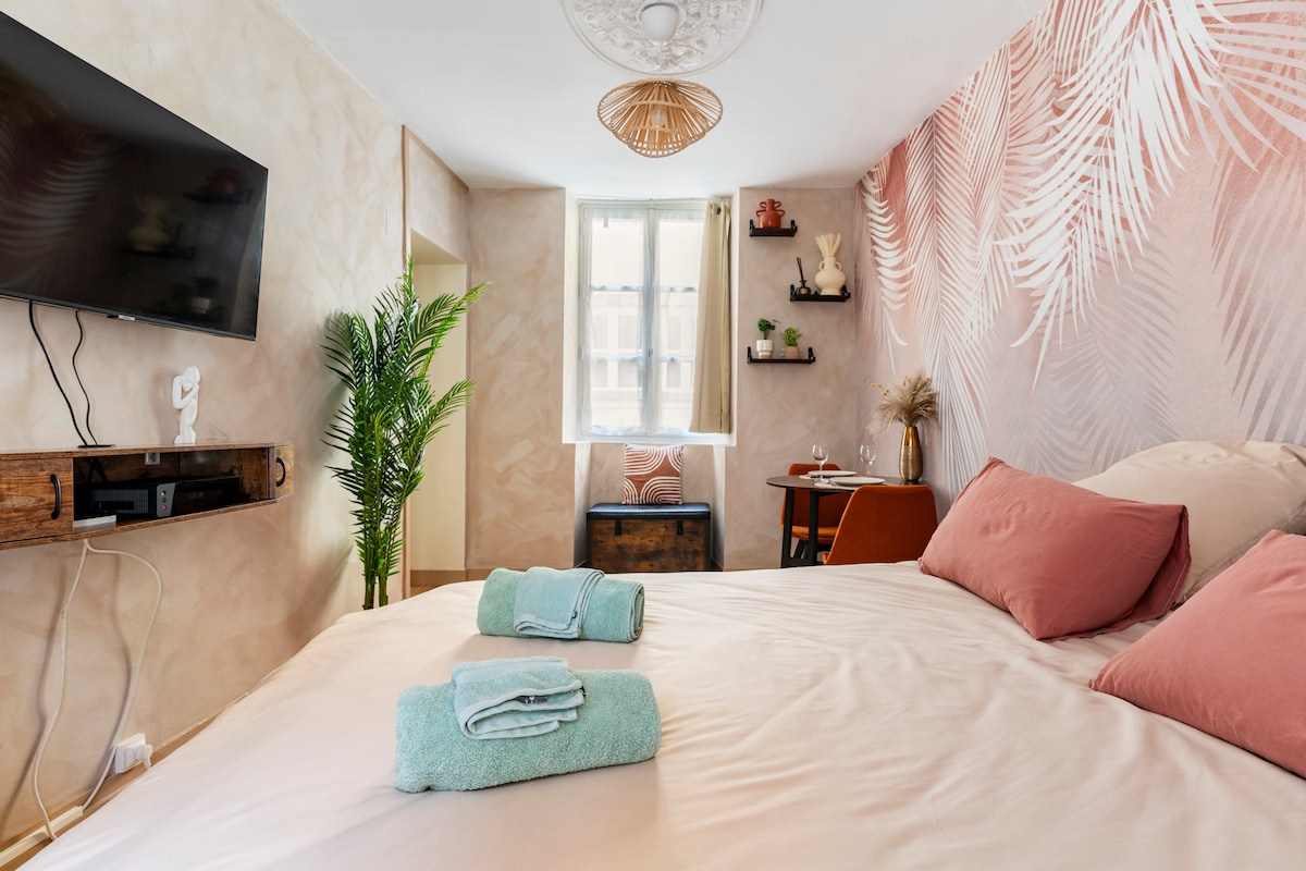 Spéciale attention COVID 19 : Nous attachons un soin particulier au nettoyage et désinfection des poignées de portes,interrupteurs... avant votre arrivée !!! appartement de 50 m2 entièrement rénové, avec décoration soignée, calme et apaisant. situé en plein centre a deux pas de la place royale,tramway au pied de l'immeuble. Idéal pour séjour en famille