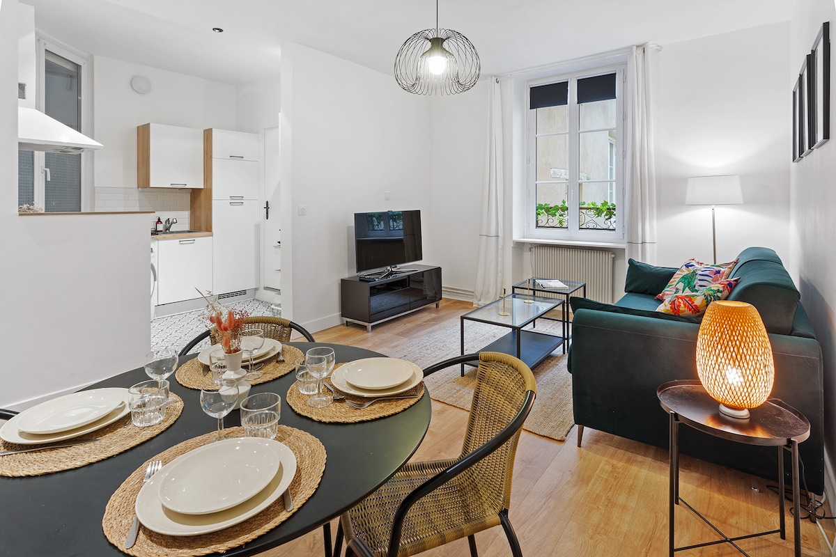 Ravissant T1 bis en hyper centre. Localisation idéale, restaurants, théâtre, cinémas, commerces, musées, tout est au pied de l’appartement. L’appartement est situé au 3ème Etage d’un bel immeuble XIXème. L’escalier en granit est large. La rue Jean Jacques est une rue piétonne très animée, mais l’atout de notre appartement, est qu'il donne sur une cour privée très tranquille sécurisée par 2 portes fermées . Des racks à vélo sont prévus (dans la limite de 2) ils seront donc en sécurité.
